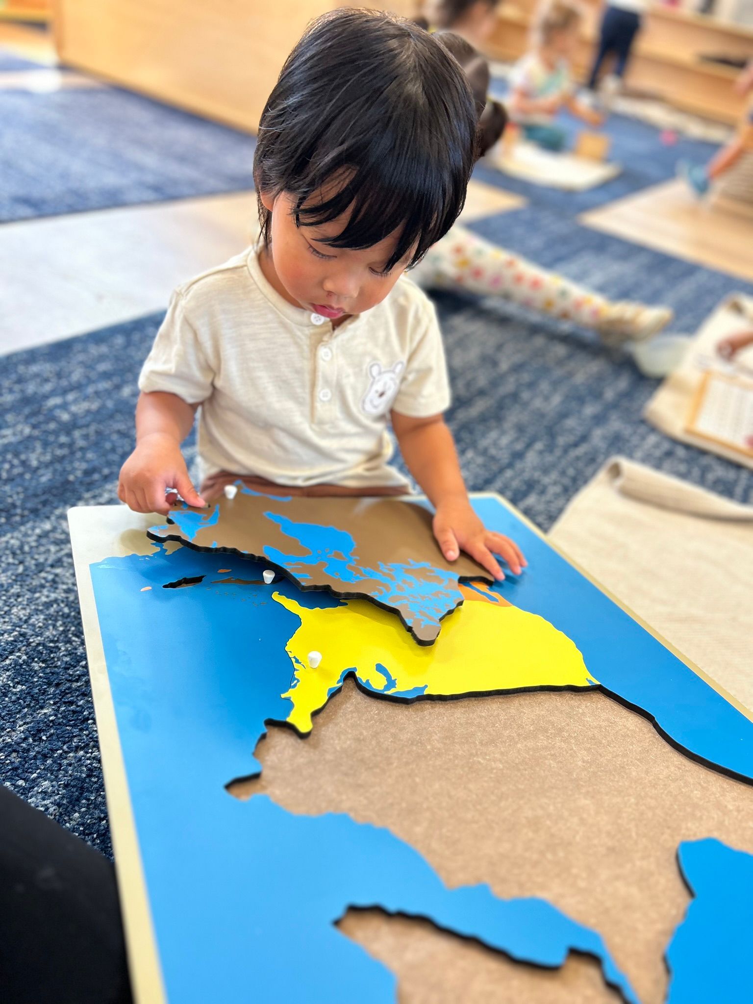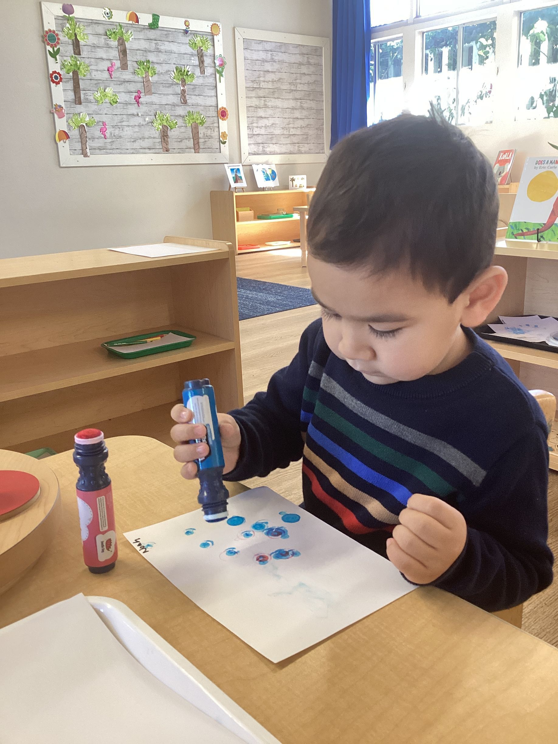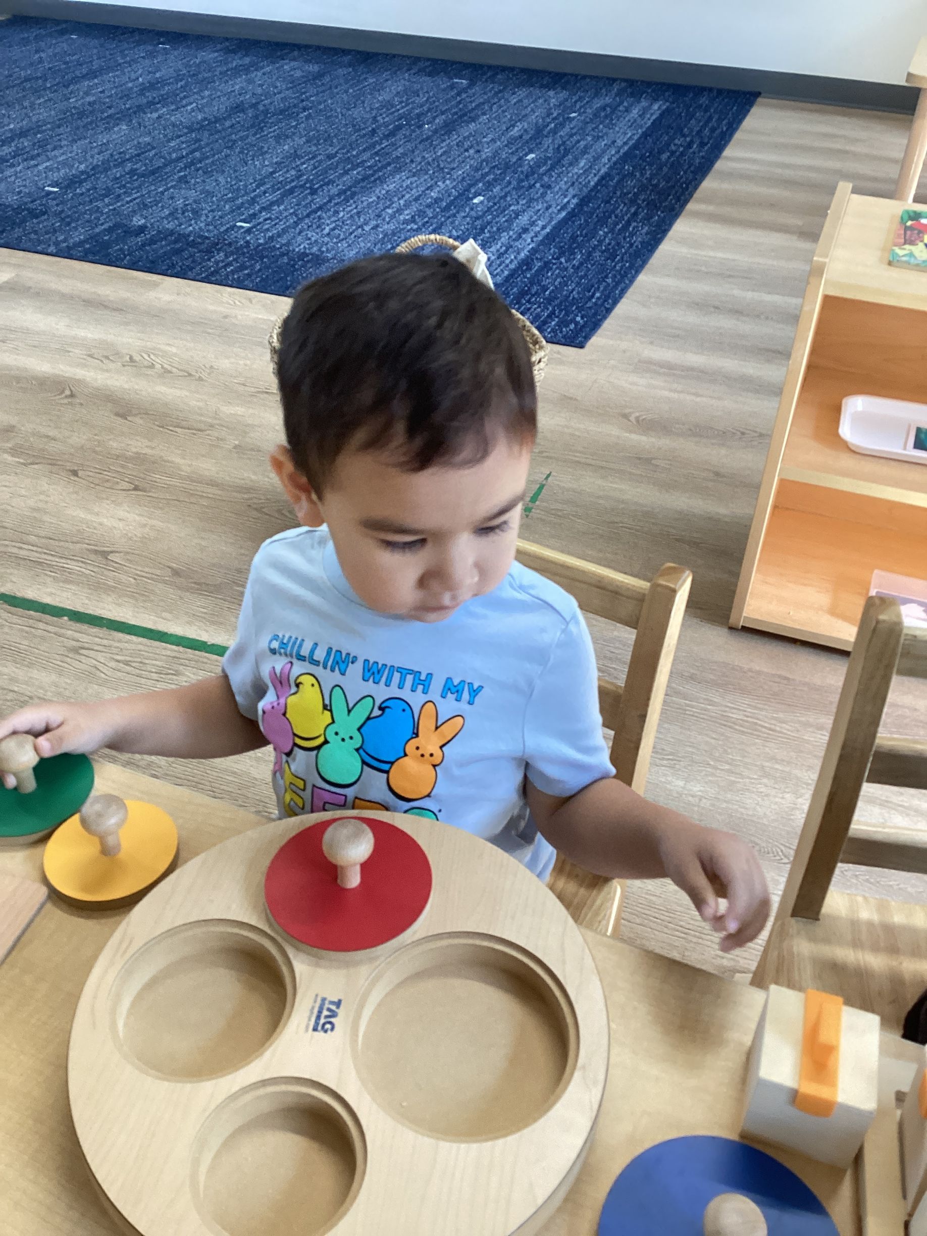 This month we learned about Cultural Awareness and Friendship. We had circle time discussions about what friendship means to us, we also talked about how important it is to treat our friends in a respectful manner. In the Practical Life area children practiced using tongs, spooning work (with several different sized spoons) to work on our fine motor skills as well as hand-eye coordination. Children also had the opportunity to demonstrate to their friends how we carry a rug in our classroom during circle time! This month our book was “Little Blue & Little Yellow” which was presented during a circle and made available for our kiddos to read in our language area.
