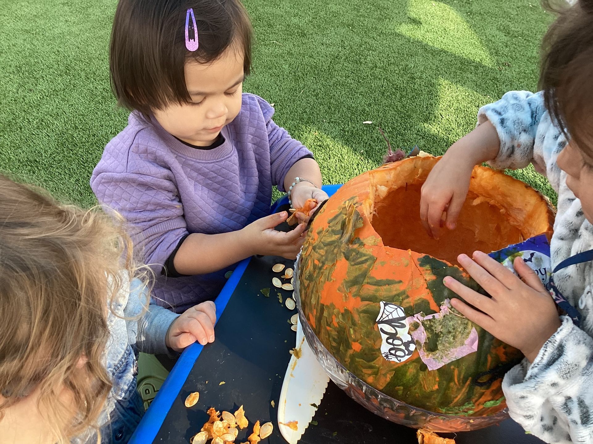October has ended, but Pre-Primary had a very fun month! This October, our main theme was the Solar System & Space. We discussed there are eight planets in our solar system, and we even created all eight using handprints and paint. We also dedicated time to Fire Safety Week. The class discussed the importance of dialing 911 in emergencies and talked about different types of emergencies. We practiced our safety procedures, experienced the sound of the fire alarm, and talked about what to do if we ever face a fire emergency. To top it off, the children had a great time making firefighter hats. We’ve had some fantastic Show & Share moments this month, and the kids loved participating. We also made a cozy fall sensory bin and celebrated the Scholastic Book Fair by sharing our favorite books. Thank you to everyone who purchased books for our classroom – your support means so much. As October wrapped up, we dived into the life cycle of a pumpkin and decorated pumpkins in class. For our last show and share, students brought photos of themselves from Halloween.