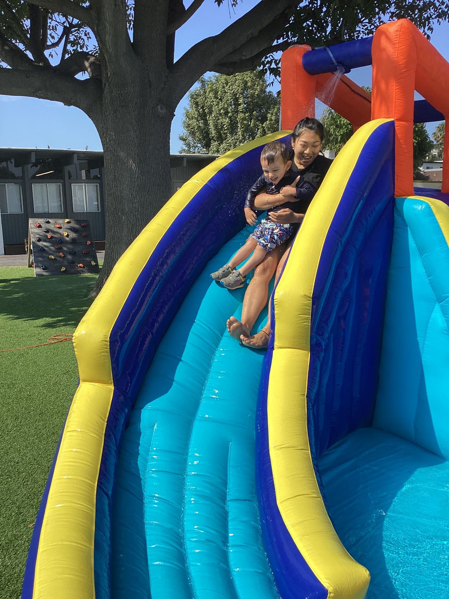 Summer has officially come to an end. Our summer has been filled with such fun adventures, activities and new friends. The first week of summer we started with a bang with our Party in the USA theme. We created the American flag by using concept art using markers. We used forks and blue, white, and red paint to create some amazing fireworks! The following week we decided to chill by the ocean. We learned about sea animals, we played some fun games of “go fish” with ocean animals on the card, and then we painted some amazing jellyfish, sharks, and clownfish. Afterwards we collected a bunch of items around the classroom and outside, just like collecting seashells from the ocean. We used these items to create sensory bottles. We also practiced recycling by making our sensory bottles from plastic bottles donated by Ms. Stephanie. Thank you, Ms. Stephanie! As we held our sensory bottles, we noticed they looked a bit like rocket ships. Inside the sensory bottles the paint would swirl around like our galaxy. So, we tried to zoom to space. But then we realized that we had no rocket ships, so we had to make our own from different shapes, such as rectangles, squares, and triangles. After building our rocket ships and exploring space. We had to return to earth that Friday. We had a scientist, Professor Egghead, come and speak about dry ice. Doctor Egghead did an experiment with dry ice, and she sent balloons flying across our classroom. We decided to do a few experiments of our own by creating some volcanos on our playground using vinegar, baking soda, and some paint.