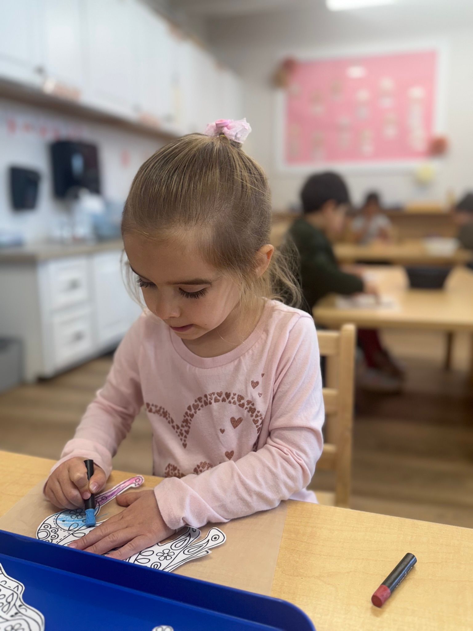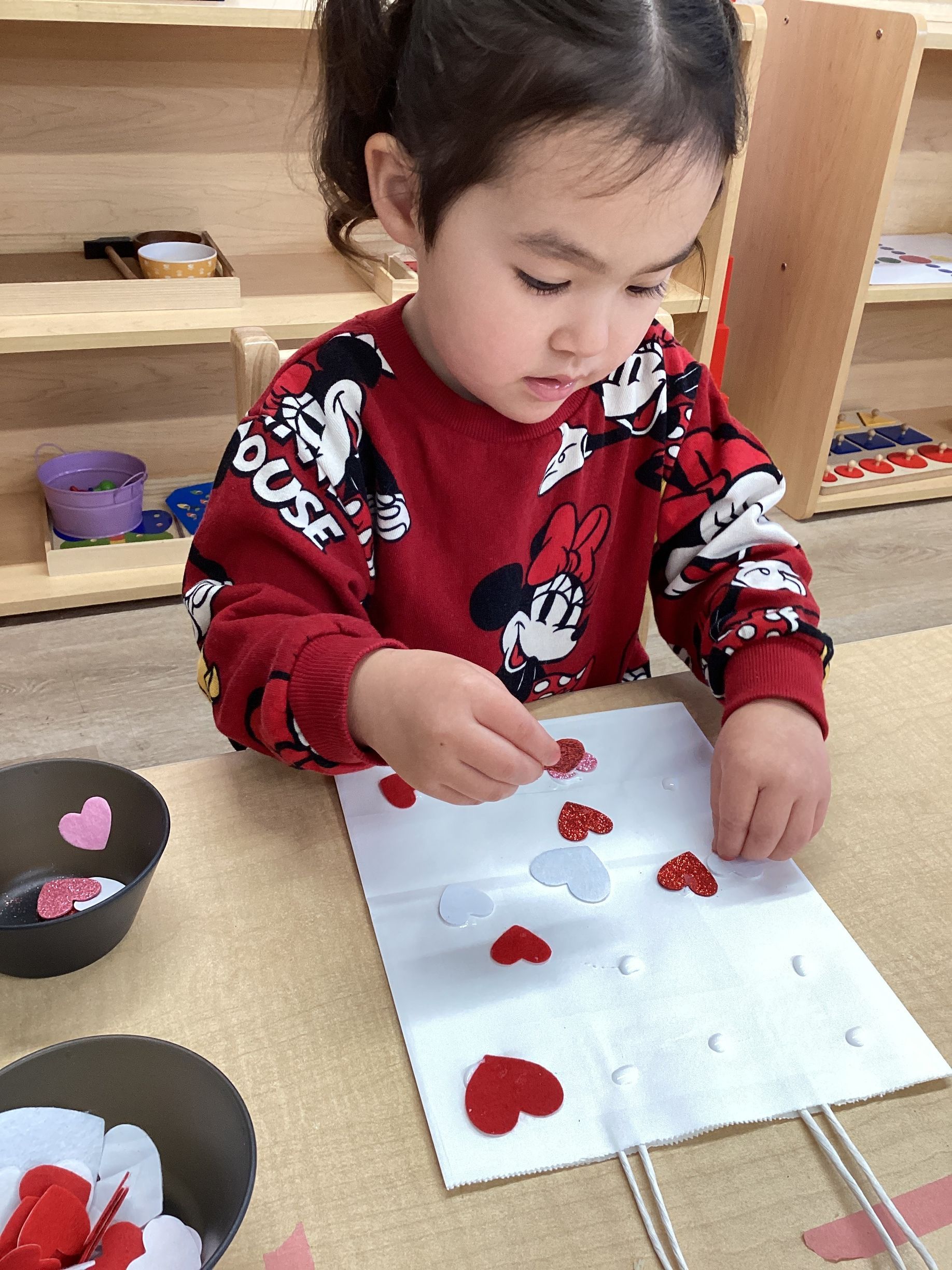 February was a fun month filled with love, friendship, and more celebrations! We shared ways to be good friends and practiced by using our helping hands, using kind words, giving space, and how to invite a friend to play or work. We also introduced the skill of problem solving with the use of the peace rose. We read The Peace Rose book which models how to use the peace rose and how to share feelings and resolve conflicts. The children prepped for their Valentine’s Day celebration decorating their bags and cutting heart shapes. They also made a handprint friendship wreath as a class using paint – Hands Together, Friends Forever!