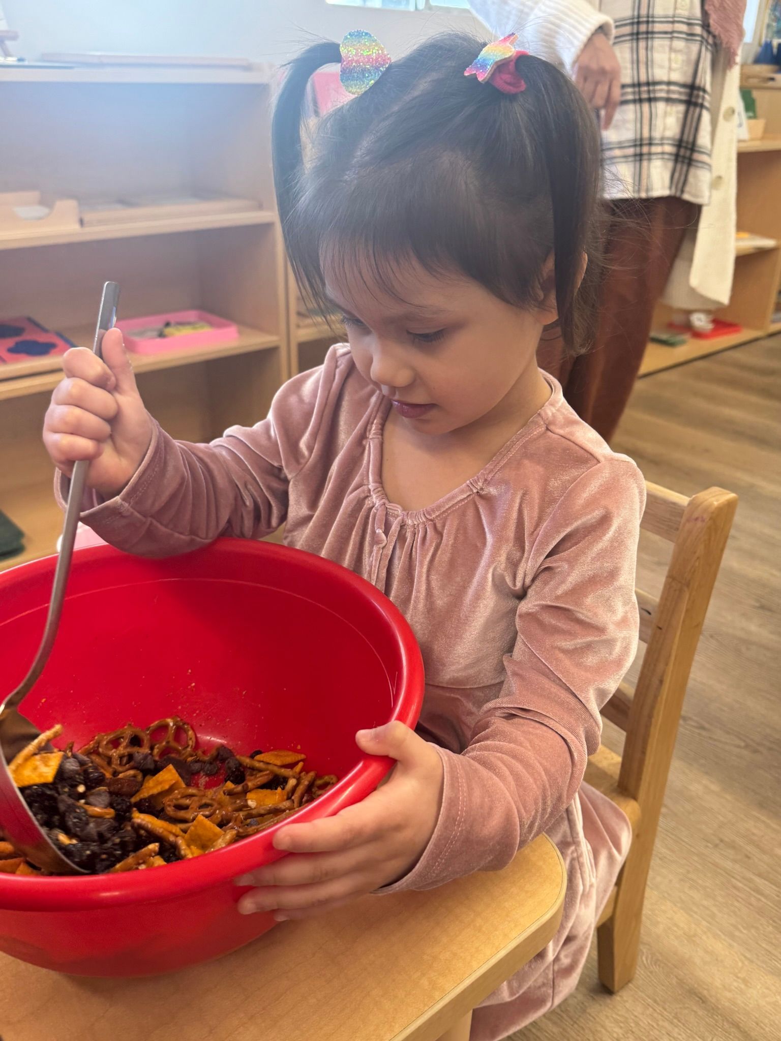 Lastly, we ended our month learning how to take care of a plant and celebrating the Lunar New Year. The children truly enjoyed learning how to clean and care for an indoor plant with grace. We simply used a small spray bottle and cotton ball. We also talked about the importance of overwatering a plant. We have great Botanists underway! Finally, we celebrated Lunar New Year – the year of the snake – making lanterns and cherry blossoms with paint. The children also received a lucky coin in a red envelope. Happy Lunar New Year!