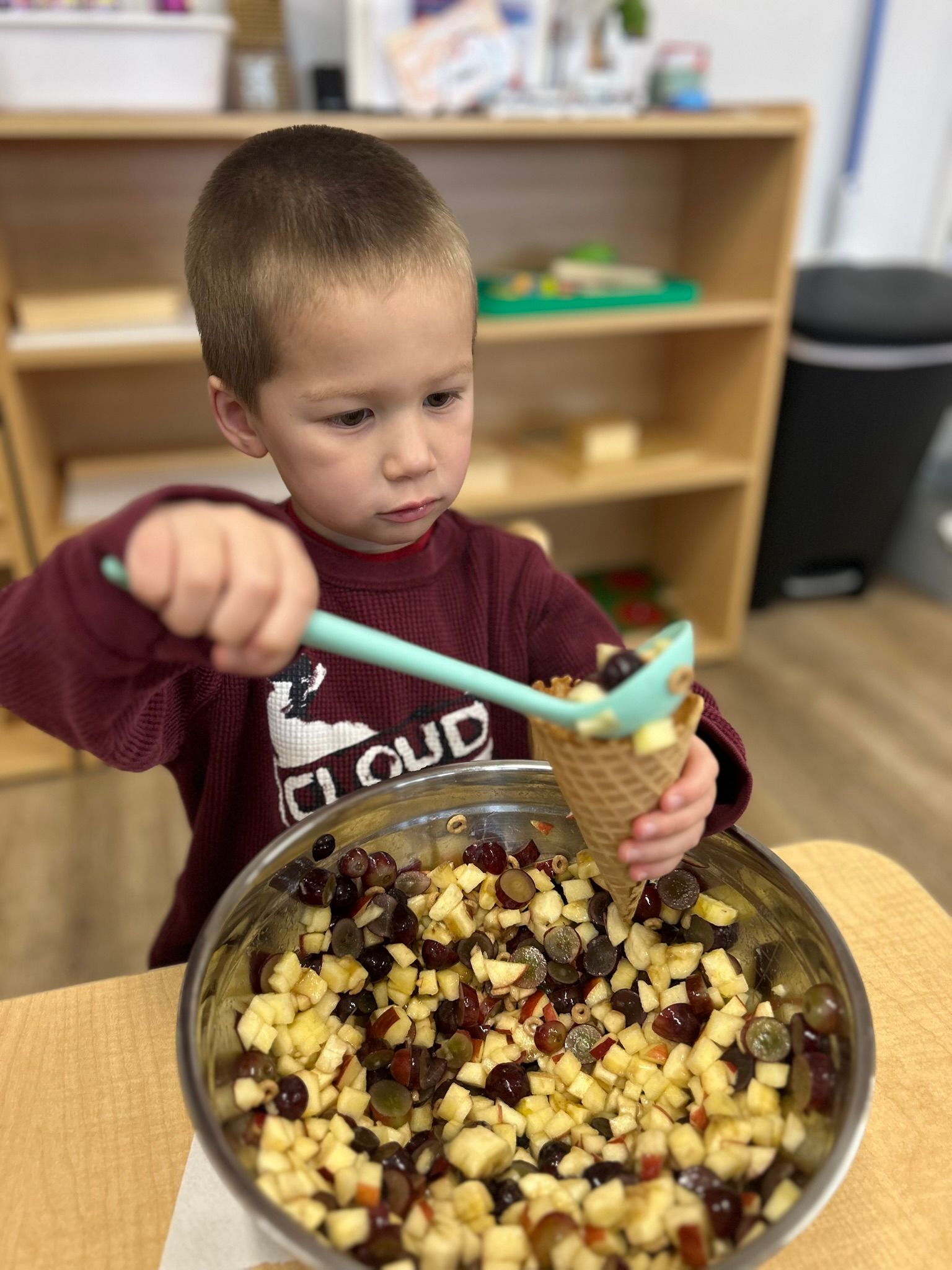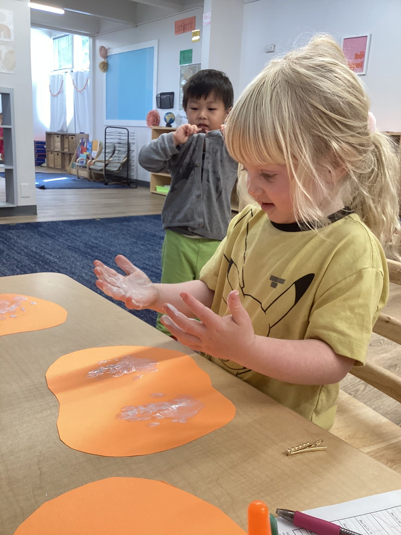 October’s theme was the Solar System and Space. For geography, we focused on the continent of North America. The book of the month was We Are Going on a Leaf Hunt by Steve Metzger. Throughout October, the children participated in lessons on locating North America on maps and globes. They engaged in discussions about the changing seasons and weather. Our friends enjoyed talking about how their daily outfits have transitioned from shorts, skirts, and short sleeves to leggings, pants, long sleeves, and sweaters.