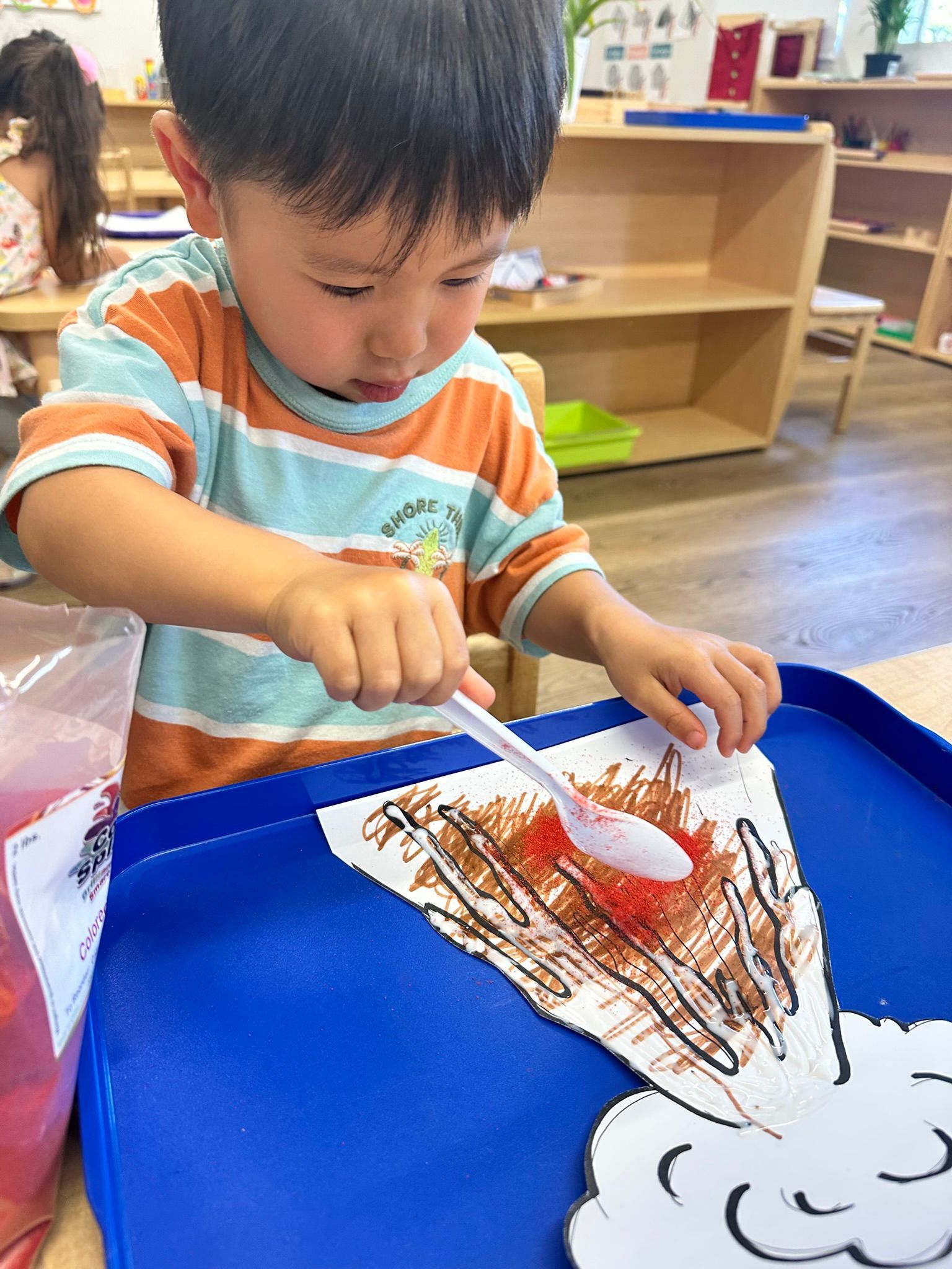 We explored different types of islands such as oceanic islands, continental islands and archipelago. During our discussions, some of the children shared their own island experiences, including visits to Catalina Island, and how much fun they had there! We also learned about the continent of Australia. The children enjoyed guessing and discovering which animals live there and learning about popular sports in the country. Our volcano unit was another exciting highlight! We talked about how volcanoes are formed, the different parts of a volcano, and the difference between active and dormant volcanoes. The children especially enjoyed a hands-on volcano activity that brought their learning to life.
