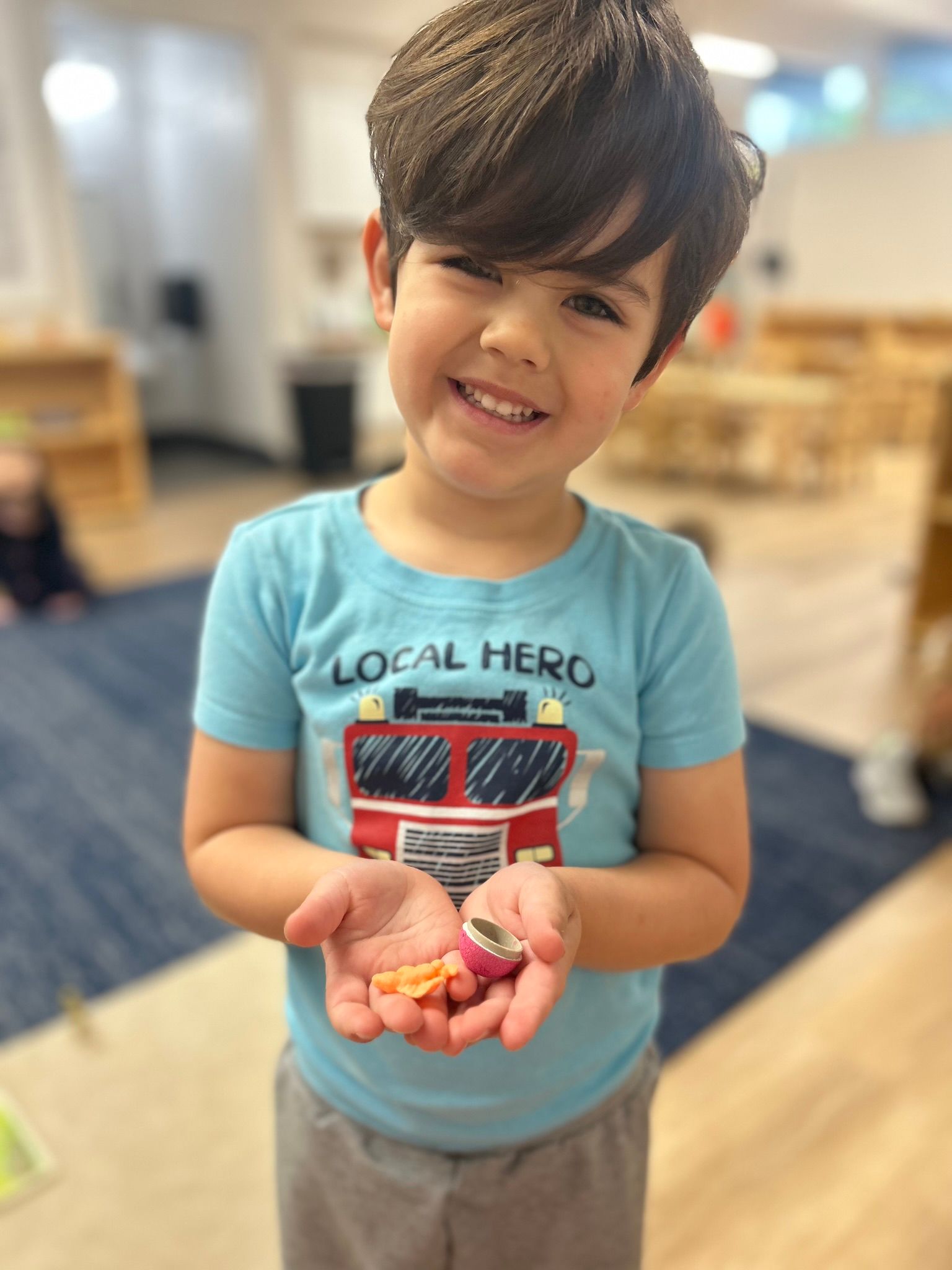 In addition to our whales & migration theme, the children also enjoyed a special focus on the book La Oruga Muy Hambrienta. With the book children practiced counting, days of the week, and food vocabulary in Spanish. We read the book together several times, using props and picture cards to support comprehension and language development. During the work period, students were able to use these props to place the food items in the order the caterpillar ate. The repetition of phrases helped the children gain confidence in speaking and recognizing Spanish words. Along with this, the story supported our ongoing conversations about healthy eating habits. This experience not only deepened their Spanish language skills, but also brought joy and excitement.