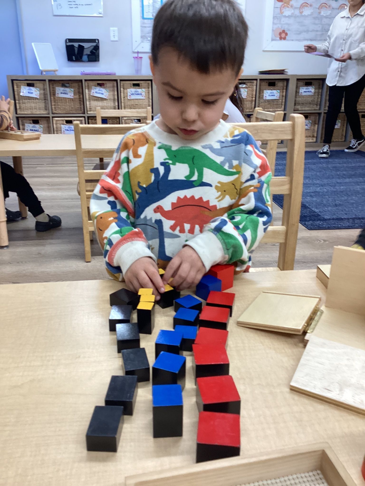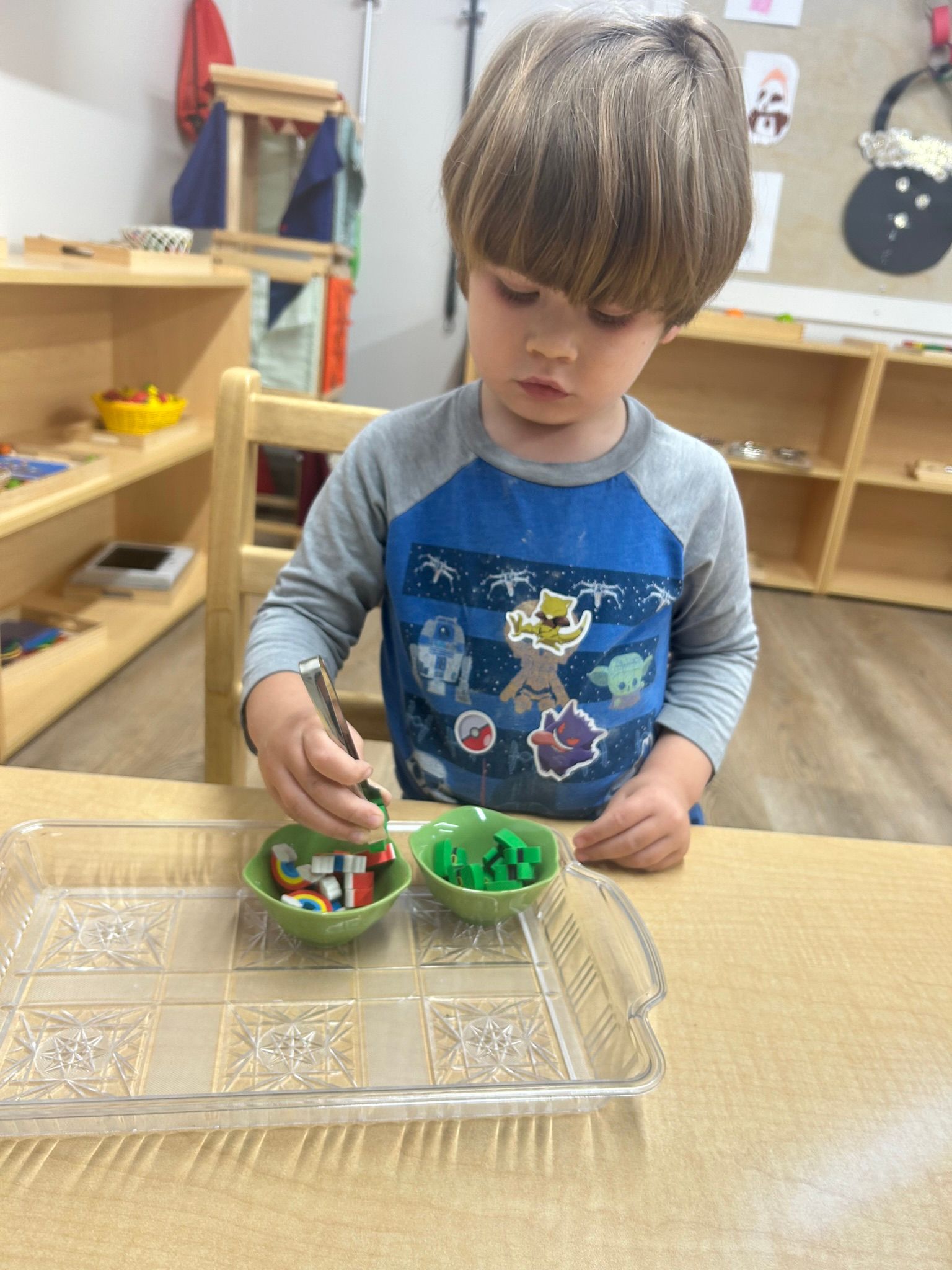 This month, our classroom dove into an exciting exploration of whales, migration patterns, and the continent of South America. In Practical Life, children practiced skills like pouring and water transfer to simulate ocean currents. This allowed us to build both coordination and responsibility. Through Sensorial work, they listened to different whale sounds and explored the textures of a whale. In Language, many of the activities were enriched with Spanish elements, allowing children to hear and use Spanish words as they explored concepts like “la ballena” and “América del Sur.” We introduced Spanish vocabulary related to parts of a whale and the countries of South America, using matching cards and storytelling to spark conversations and curiosity. In Math, the children counted whales and measured distances with number rods. During morning circle, we explored maps and globes to locate South America, and discussed the climates whales pass through. It’s been a joyful and meaningful month of discovery, with Spanish inspirations adding even more depth and connection to their learning.
