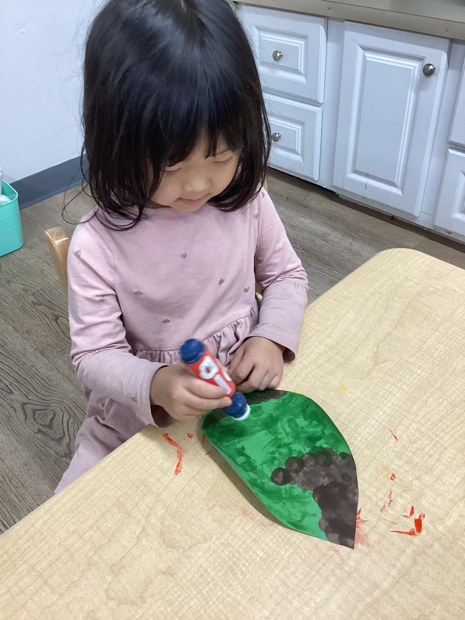 This month also consisted of learning about Europe. Students learned about multiple countries and food that originated there. Some of these foods were Belgian waffles, pasta, arancini and pizza. To bring this to life, students made their very own pizza. These used bagels, tomato sauce and pineapple. We then put them in the oven to have a wonderful cheesy pizza. The following week students learned about important landmarks such as the Eiffel Tower, Louvre Museum, Stonehenge, Big Ben and Buckingham Palace. Students then made a craft of the Eiffel Tower using straws and popsicle sticks. They ended the month by painting the German flag.
