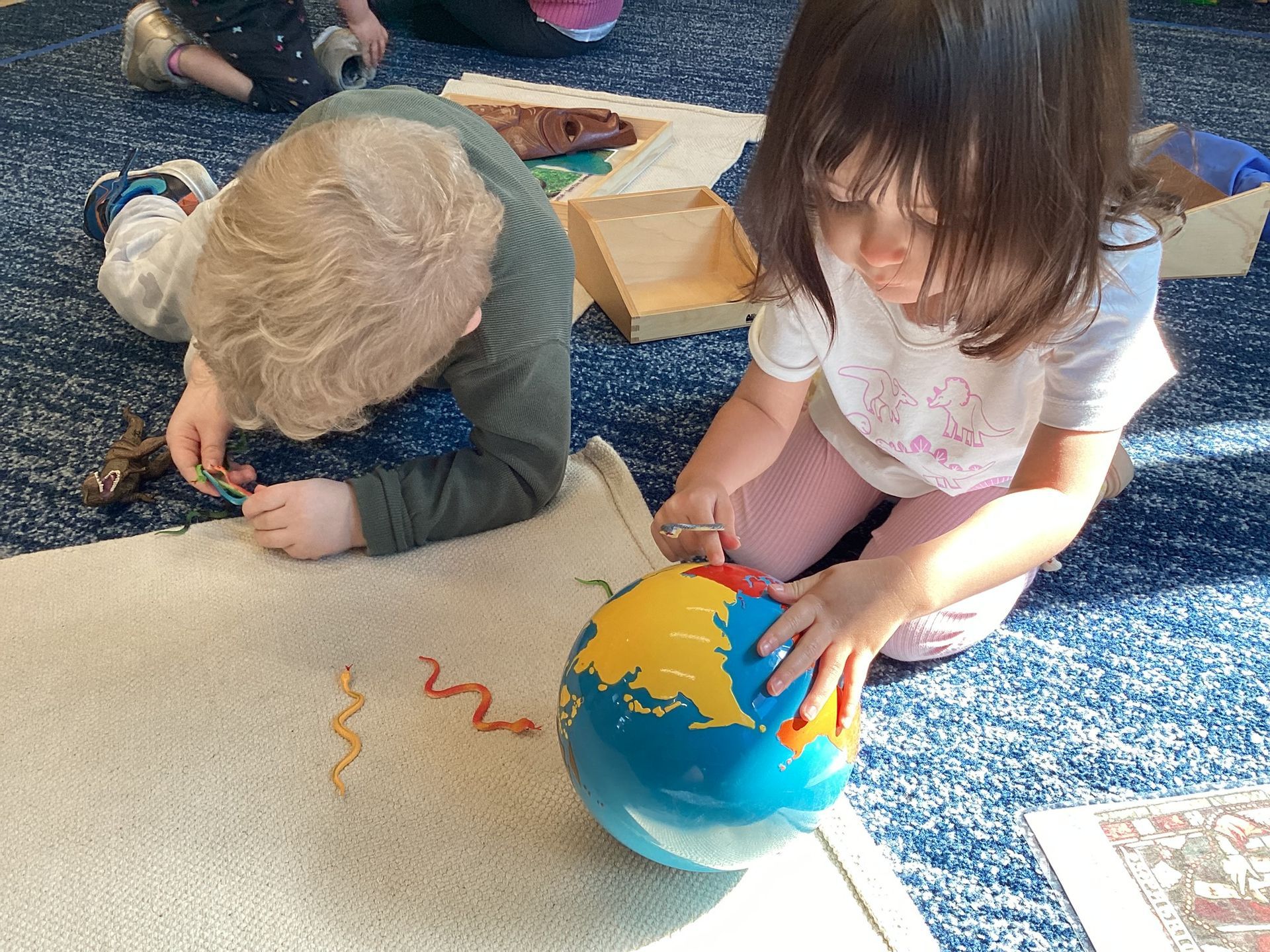 What a busy month we had in March! Our students had such a blast learning about this month’s themes. Dinosaurs are a very popular topic, so we were all very excited to learn about them for in the classroom. We discussed the three kinds of dinosaurs: carnivore, herbivore, and omnivore. Some of our older students were able to carve out their own dinosaurs from fossilized eggs in the classroom. Students made a lot of dinosaur art and shared which one was their favorite. We also focused on the continent of Africa this month. In class, students discussed the many traditions, dances, and cultures that have come from this beautiful continent. We looked at where Africa was on the map and created our own continents out of various mediums. This month we also focused on germs and the importance of handwashing. Students practiced their handwashing skills in the practical life section of their classroom.