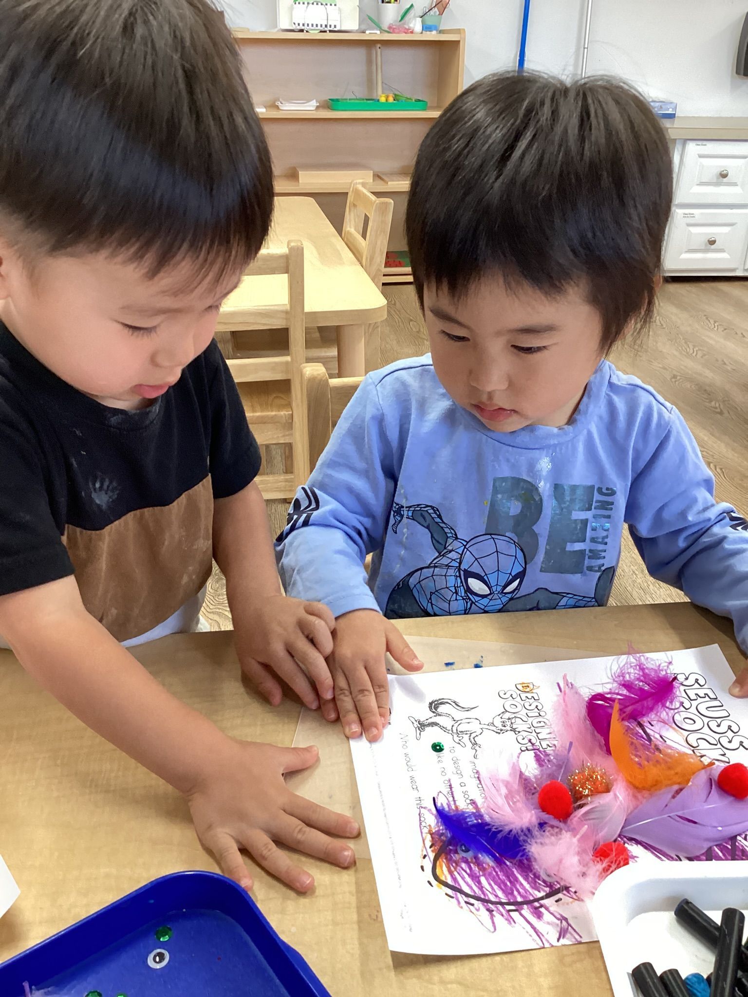 In celebration of Dr. Seuss’s birthday, this month was Dr. Seuss month! We hosted a spirit week. Students came dressed in fun outfits for every day of the week and brought in their favorite Dr. Seuss book. We also celebrated St. Patrick’s Day this month! Students came to school dressed all in green. We made lots of rainbow and shamrock art, some of our classes even made their own hats for the special day. Students enjoyed a yummy snack of green foods like cucumbers, green grapes, honeydew, and green cookies. It is always so much fun to see all the school spirit from our growing students.