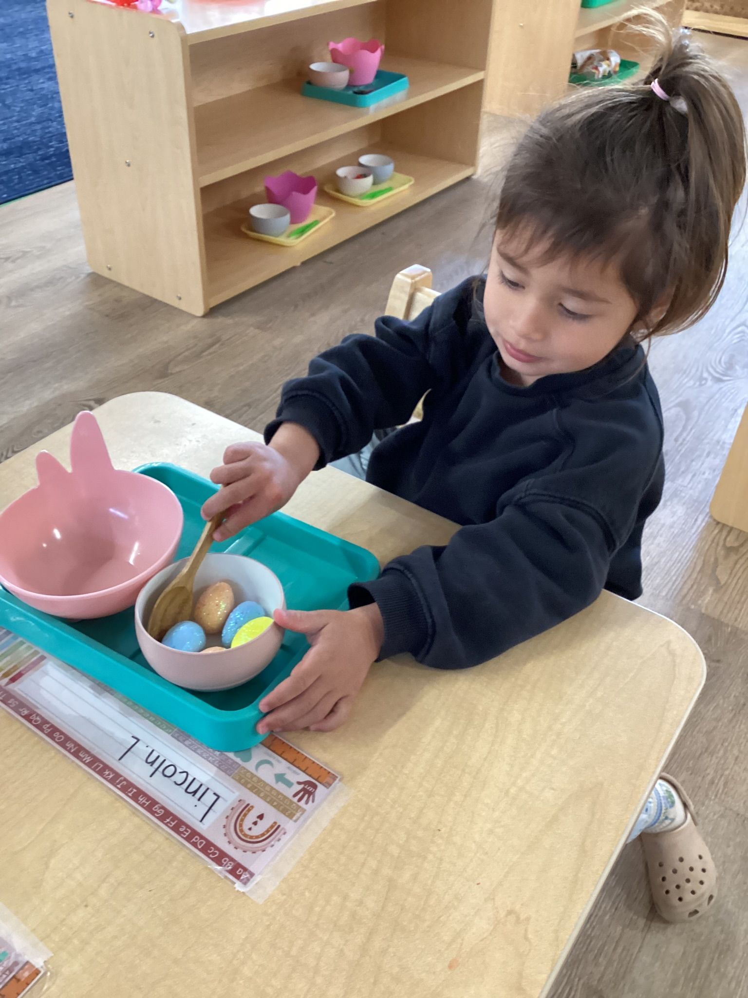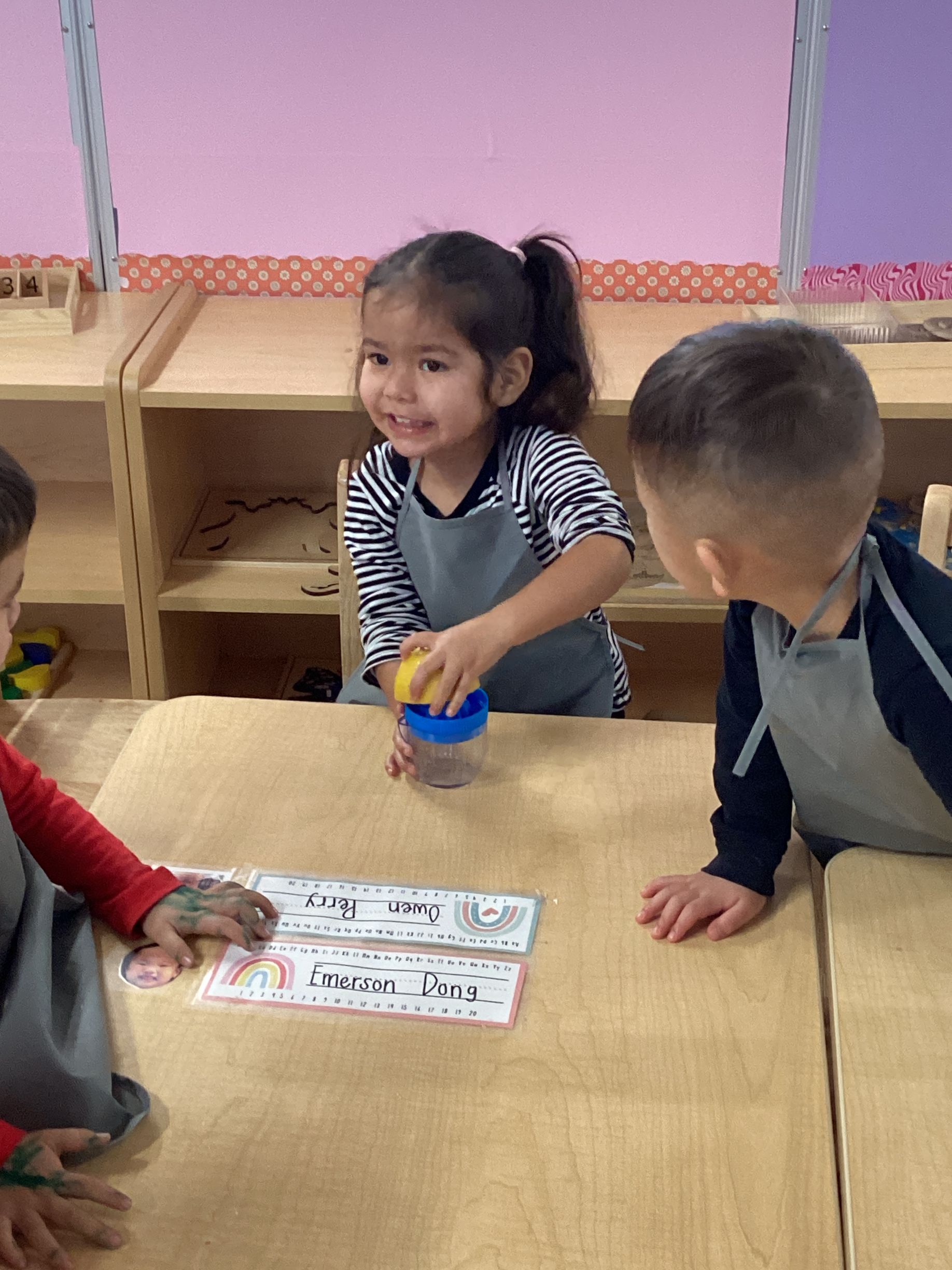 We worked on Grace and Courtesy in the classroom, all children practiced their grace and courtesy skills by learning how to share with other friends. They worked on how to say hello and good morning, how to cover a cough, wipe their noses, say please and thank you and plus more.