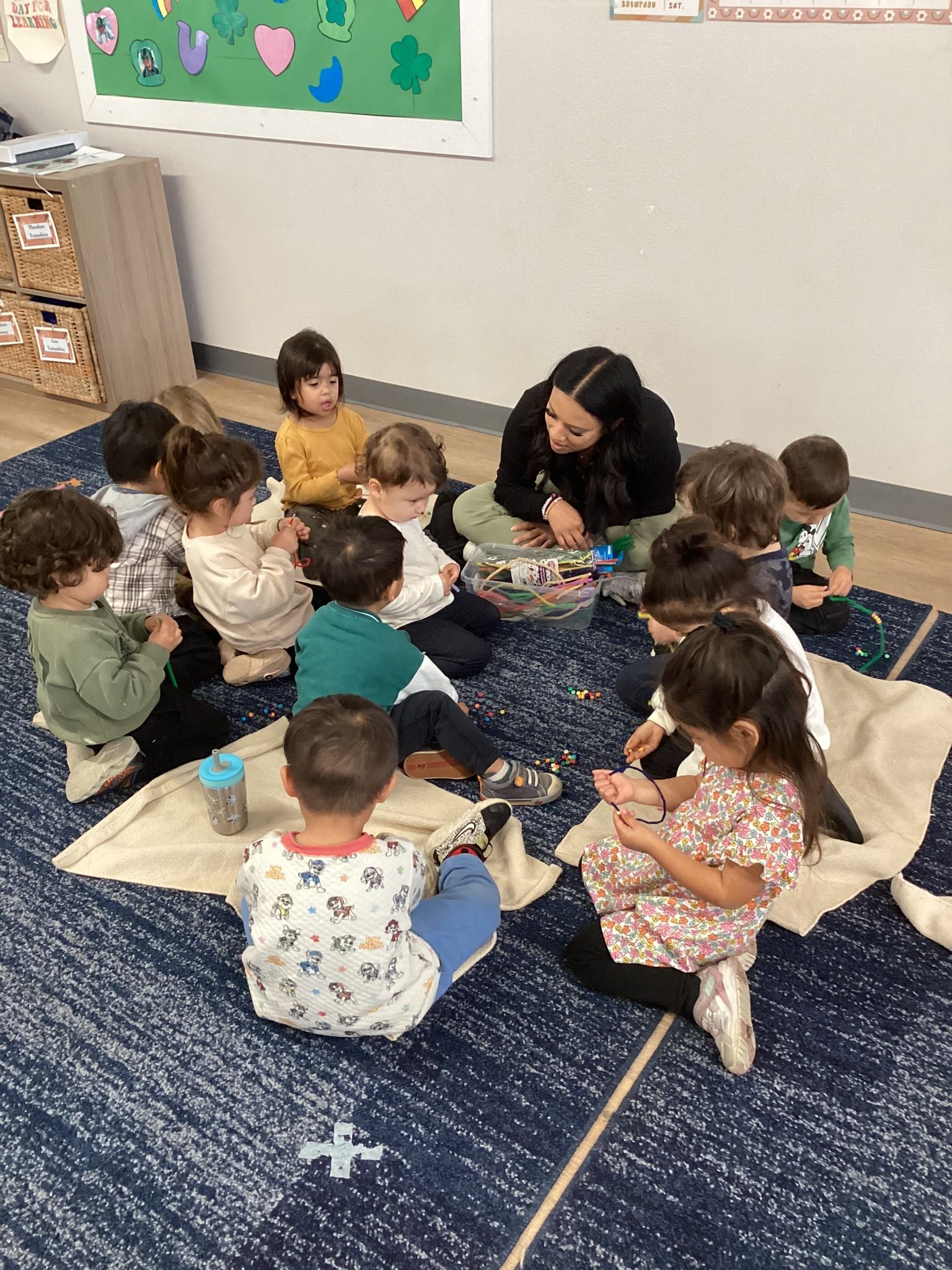 As a class we did a fun art enrichment and made a painting mixture of the two colors blue and yellow. As a whole we practiced the sounds of the letters “s,t,u,v” and were able to trace and match pictures that begin with the sound. We ended February off with our Valentines class party, which was a BLAST!! Every friend had a big smile on their face and left with PLENTY of goodies in their bags! Thank you again, to ALL the families who participated.