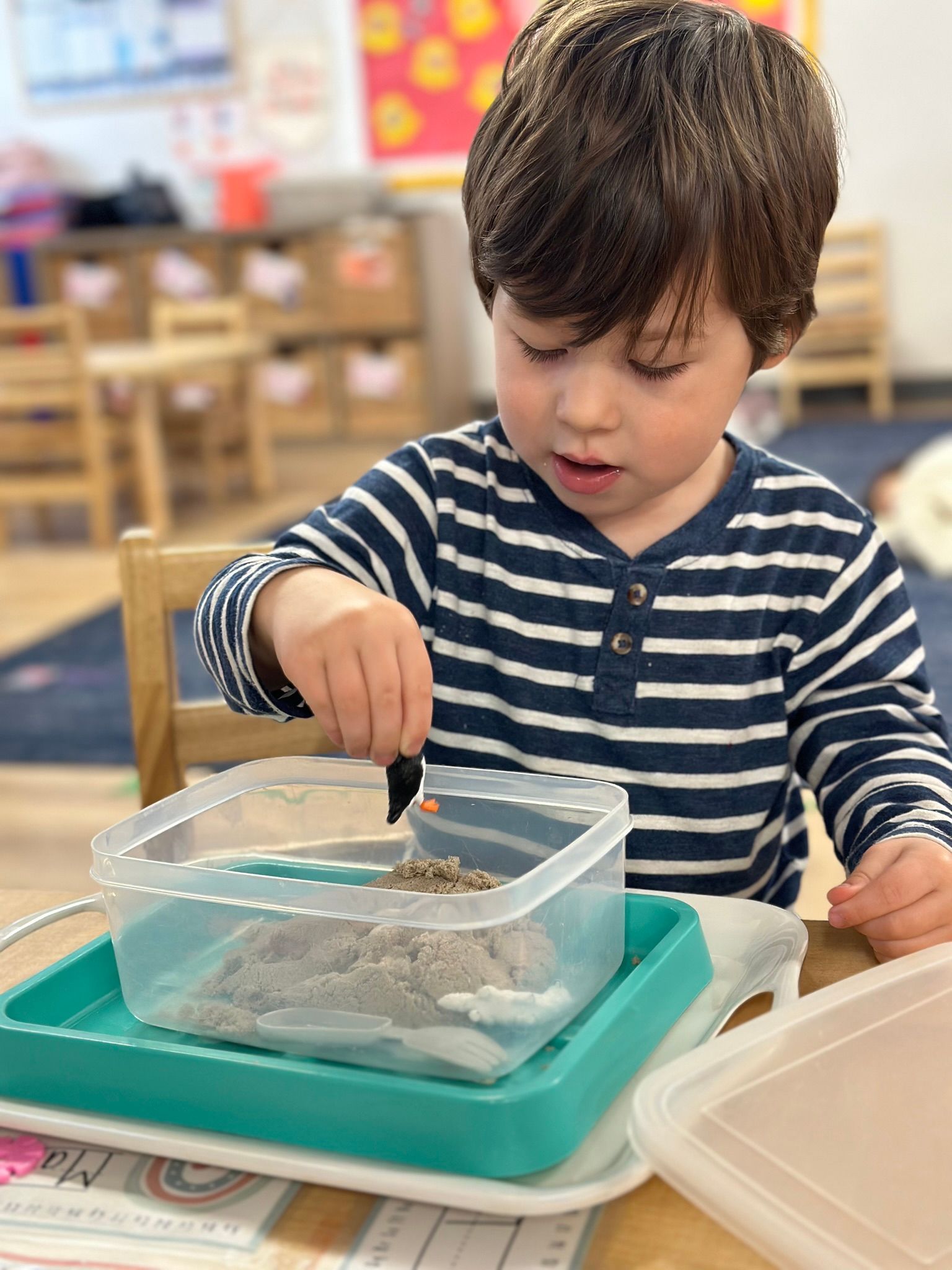 Throughout May, we also learned about different dinosaurs and matched pictures. A class favorite was fossil digging, the children were able to dig through sand and find fossils of a dinosaur and special rocks. We ended the month off by learning about the lifecycle of a butterfly, and watched it grow through all the stages. The students created art projects of their own butterflies with tissue paper and glue, it was a blast!