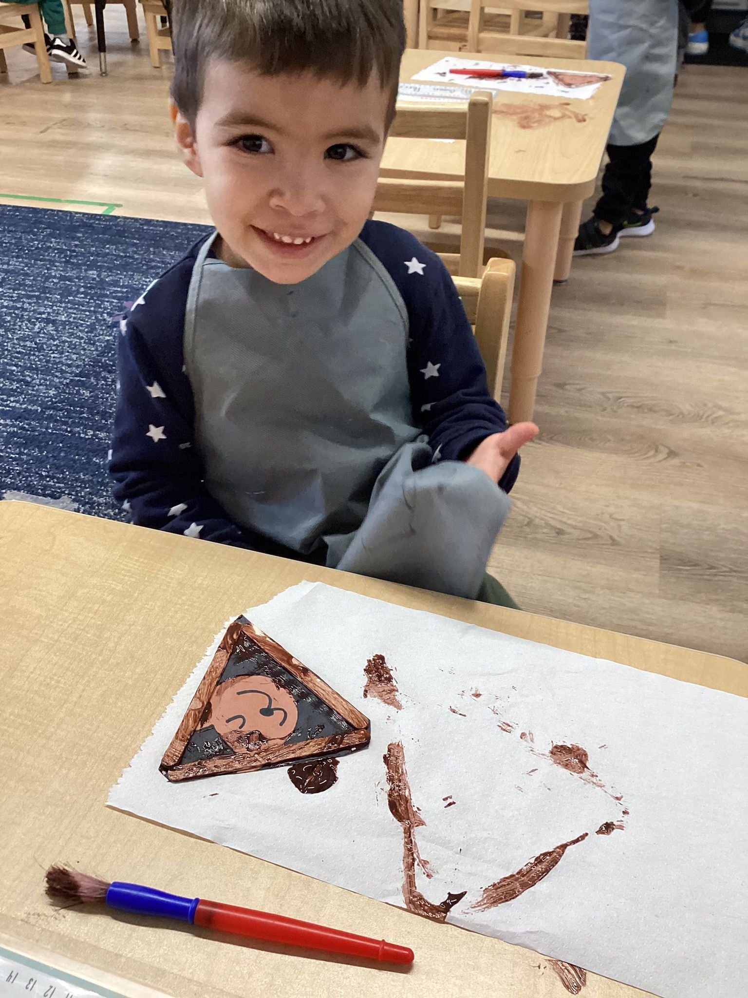 During October, the children learned about Five Senses and Feelings. We learned that our hands, eyes, ears, nose, and mouth are used for different things. We explored how our hands can feel when something is rough or smooth, our eyes can show us what we are seeing, our ears can tell us loud and quiet sounds, our nose can smell different things, and our mouth is for tasting yummy and healthy foods! We also learned how to express our feelings when feeling happy, sad, mad, excited, frustrated, and so forth. The children were introduced to the letters “e-h,” and we learned the sounds and matched pictures with the same beginning sound. In Practical life, we were introduced to small spooning, tongs, tweezers, clothespins, and matching cards of Fruit and Vegetables. As a fun way to end the month of October, we treated the kids to a fun Halloween art project to take home and a YUMMY Halloween treat. The project turned out absolutely cute and fun for the kids to make.