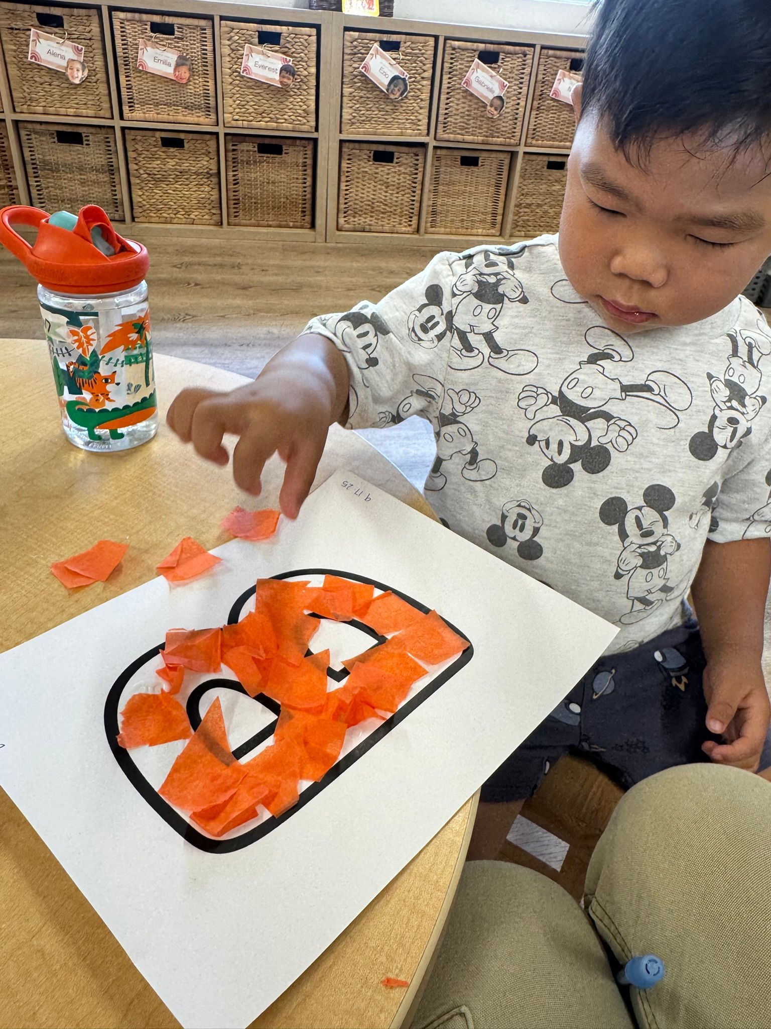 Our enrichment activities were a class favorite this month! While cooking, we made yummy spider crackers using cream cheese, pretzels and Ritz crackers. For Art, the children created their own adorable Jack-O-Lanterns! 🎨