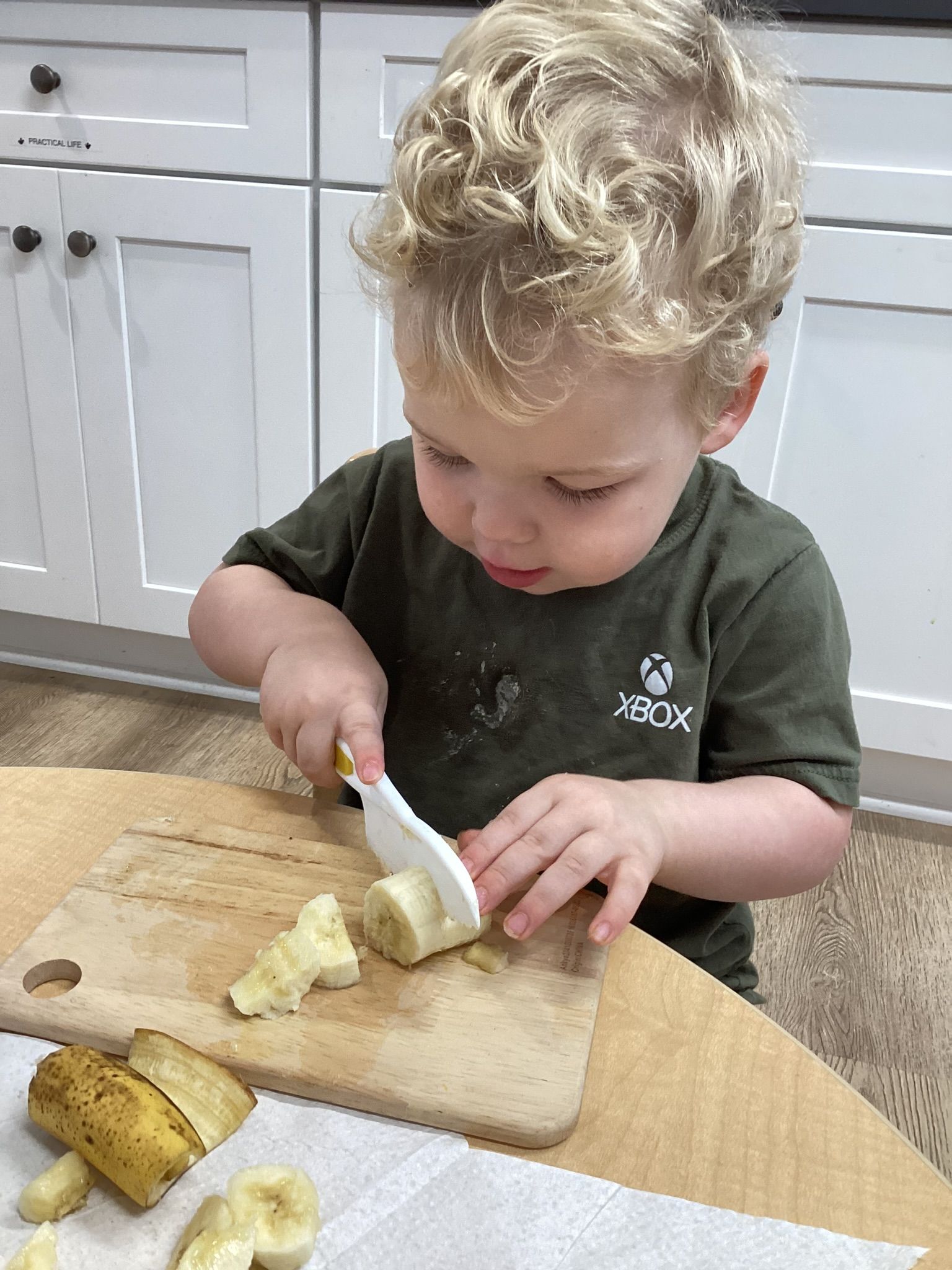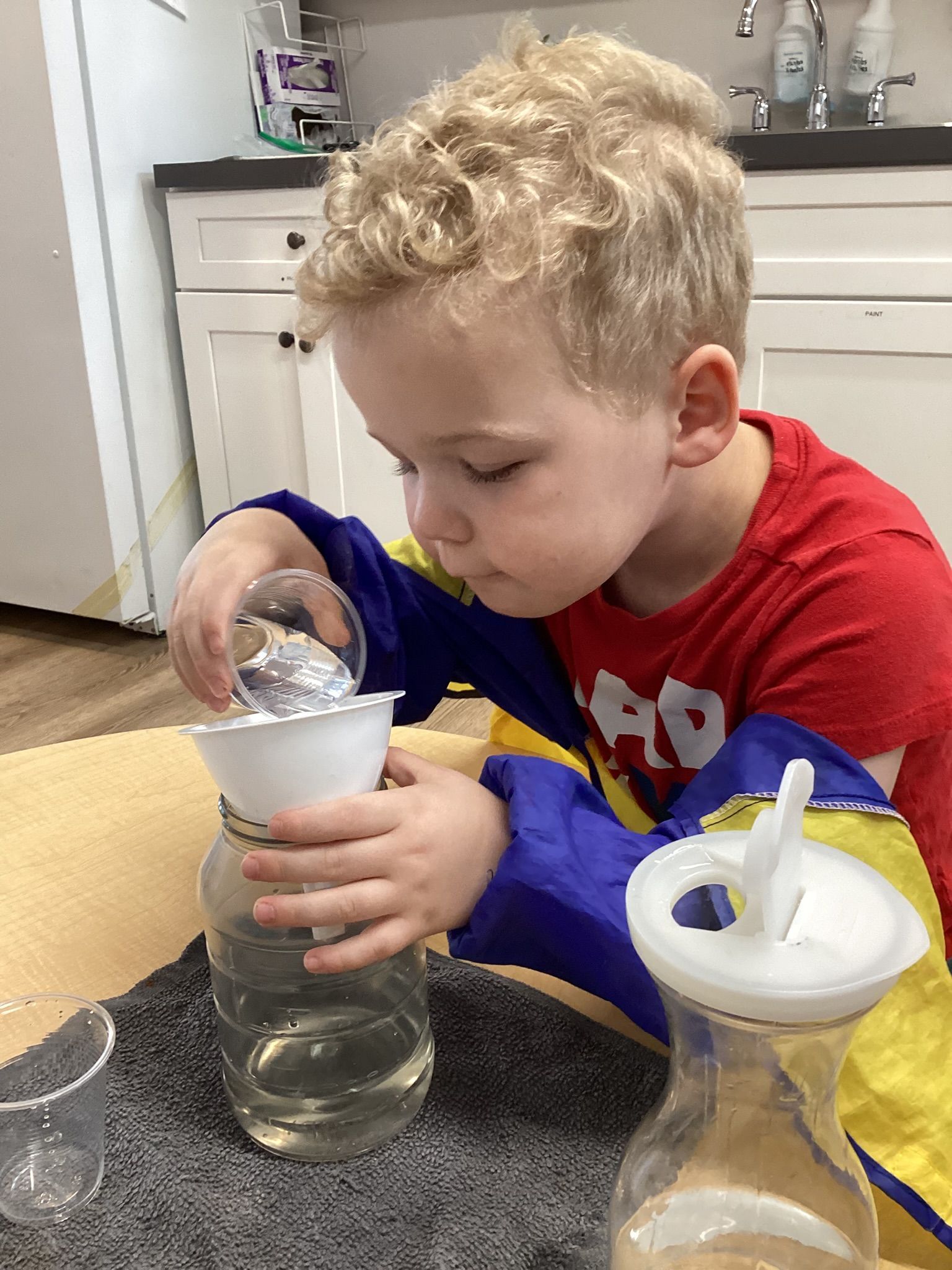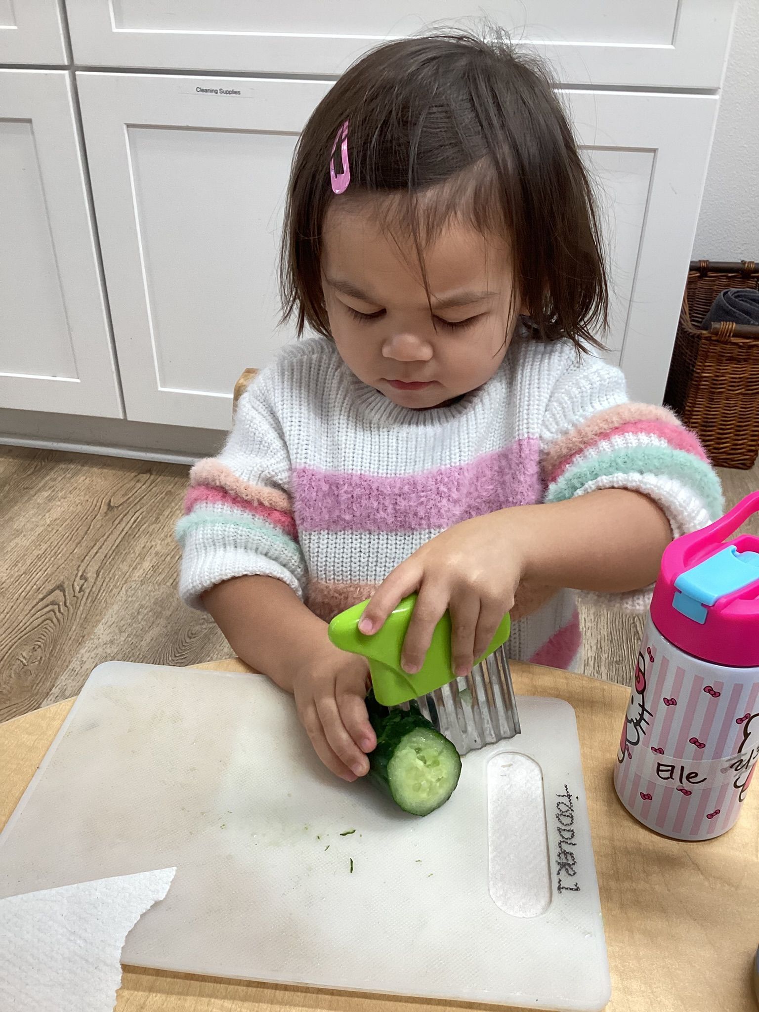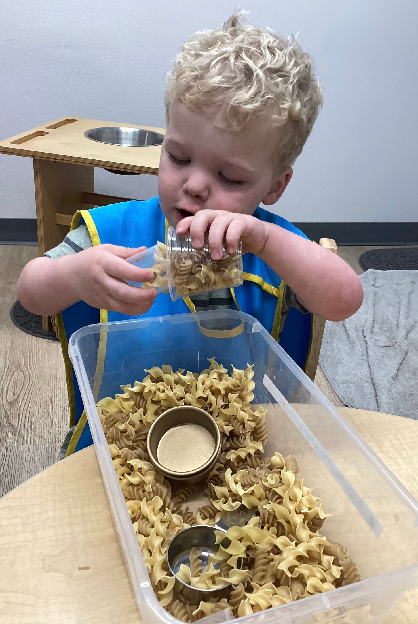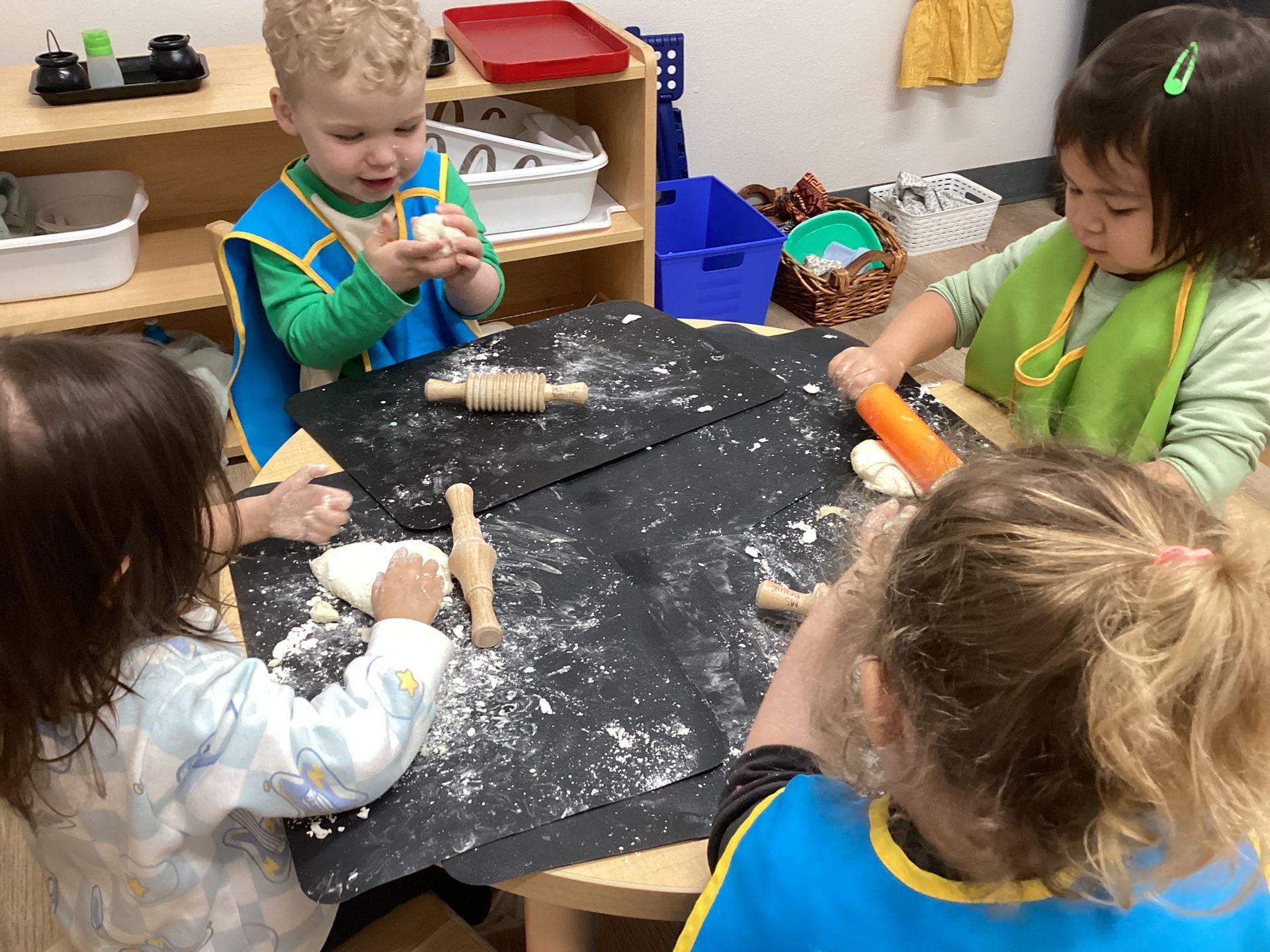 January was filled with learning all about Snow and Cold. Reinforcing this subject area, our toddlers were outside folding in all the ingredients to make our own white “Snow!”