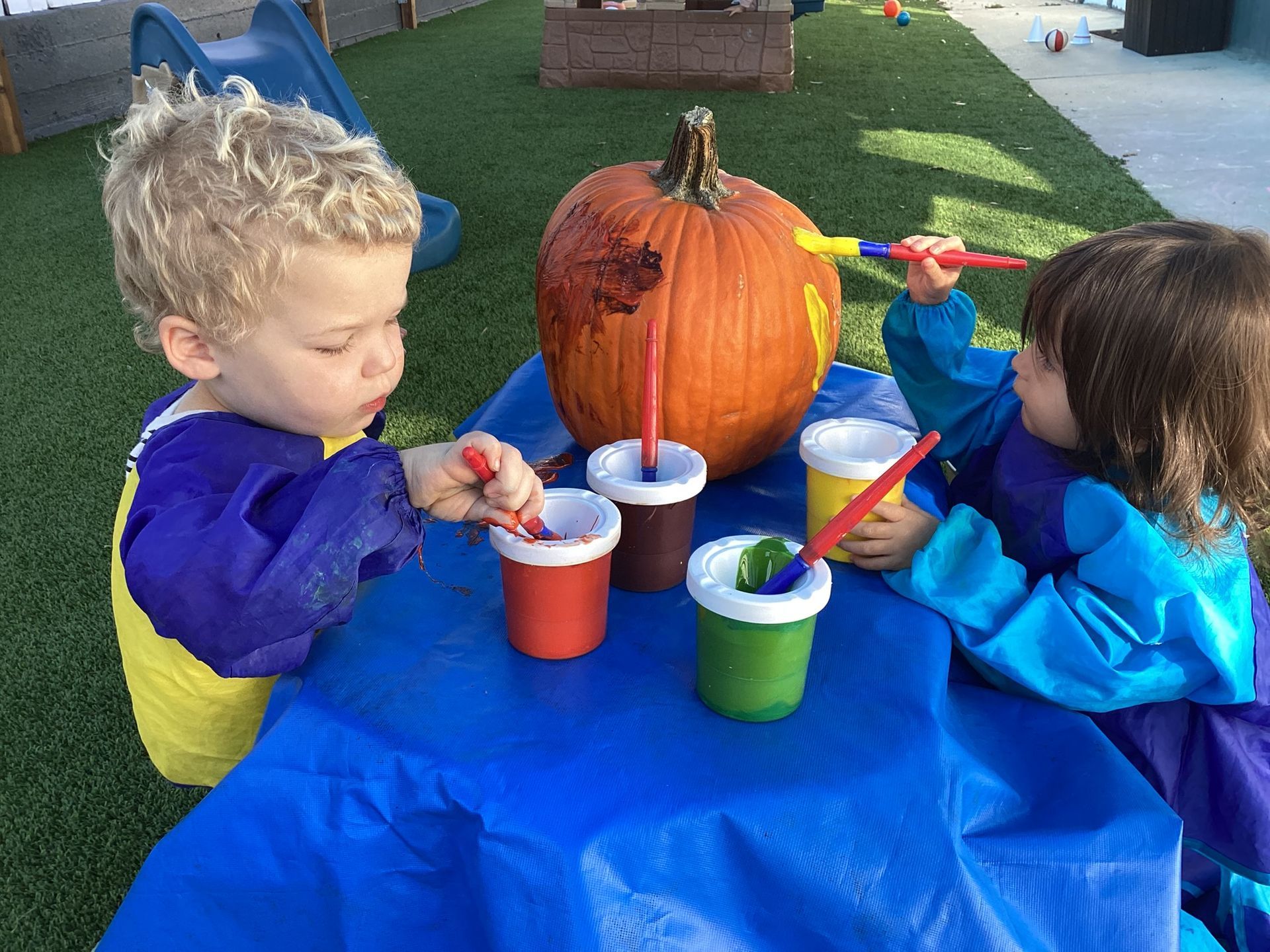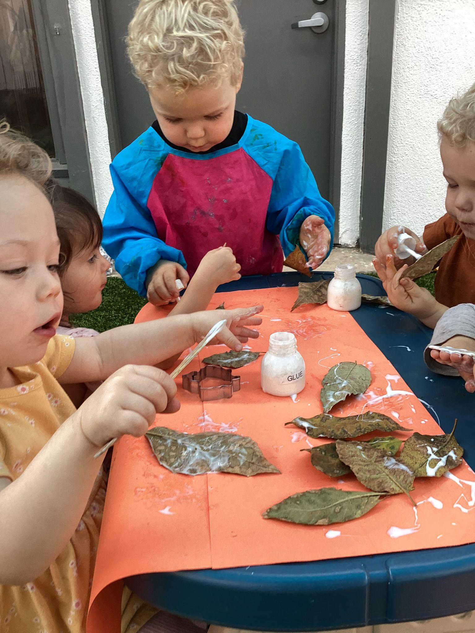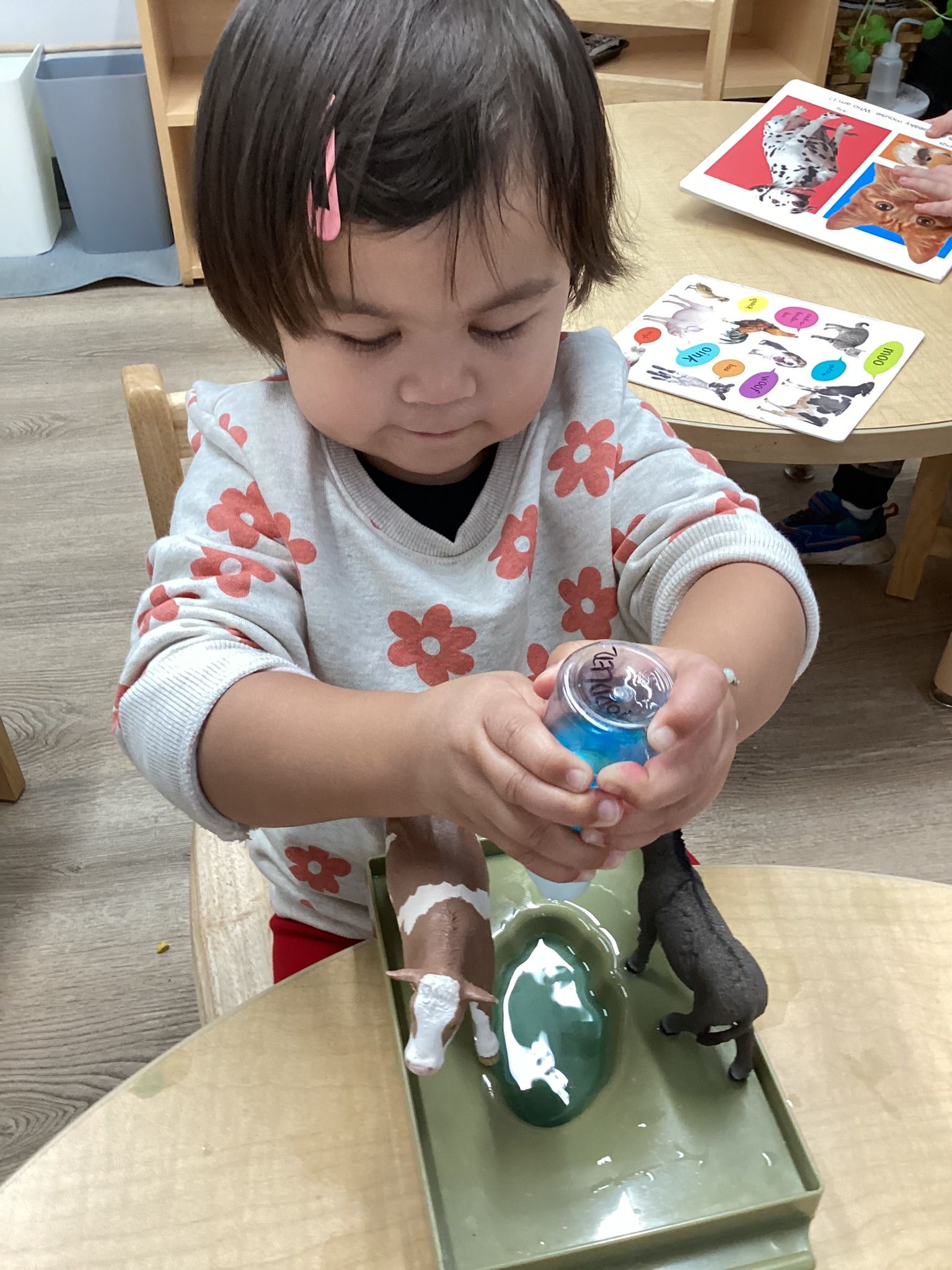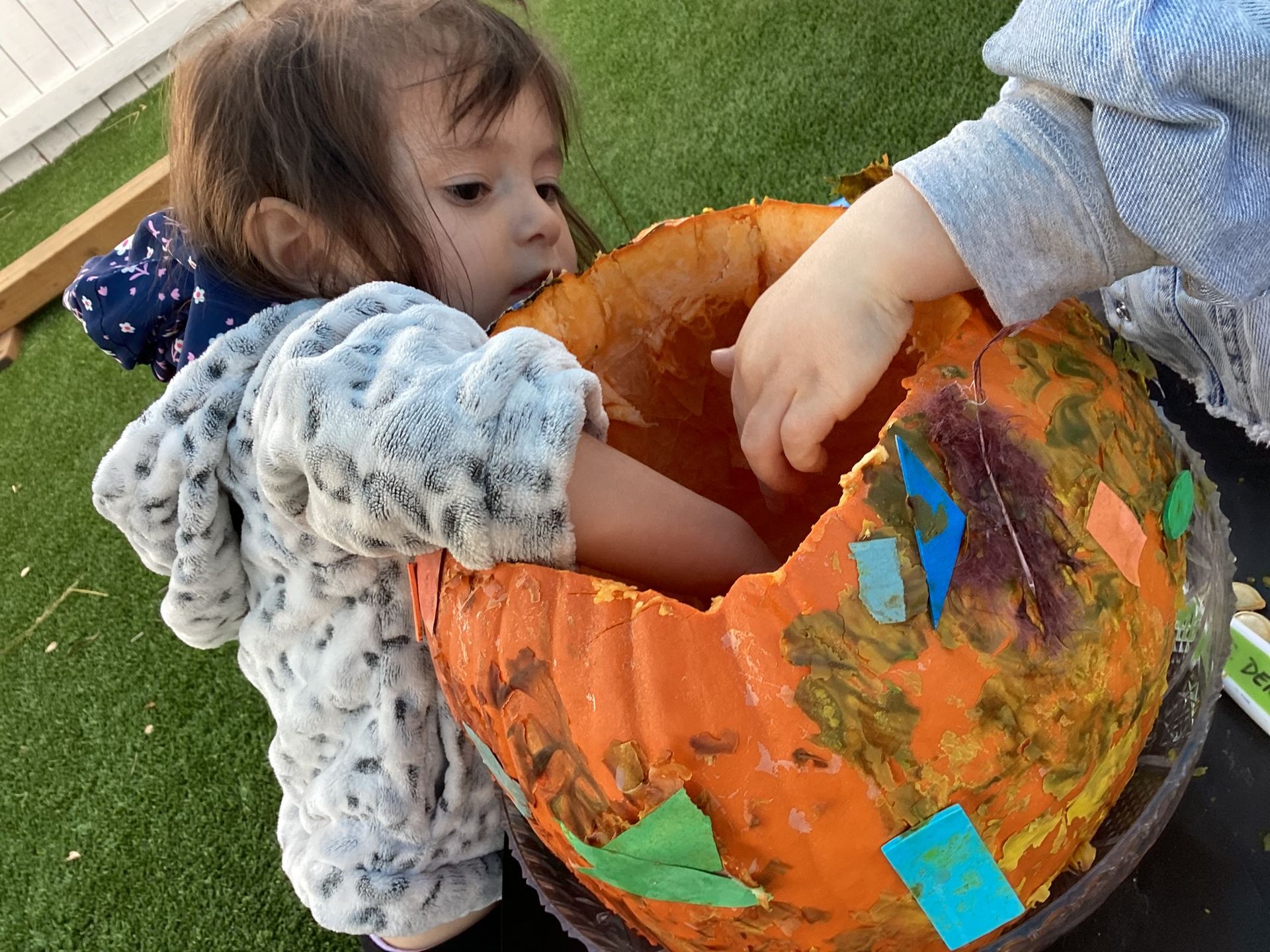 November was such a special month where the children experienced strong brisk winds that swirled the leaves around their feet. Each child this month handed their teacher leaves they found, specifically the leaves changing color: some green, but yellow, in part, and some brown, dry and curled inward. We brought each inside to add to our leaf science work to enjoy viewing under a magnifier. When we sliced open gourds in class a child’s voice raised in excitement pointing to , “The Parts of the Pumpkin,” on the wall noticing the relationship of pulp and seeds in both the gourds and the pumpkin! In Geography, the class used paper figures of Pilgrims and Indigenous people to reenact the landing of the Mayflower to a new world at Plymouth Rock, Massachusetts. They got to touch a “Plymouth Rock” and identify where it happened on an interactive map of 1620. The letter sounds for November were, “i,” “j,” and “k,” with objects like iguana, jaguar, and kangaroo. Circle Time was fun; we practiced walking quickly, flapping our wings and the familiar, “Gobble, Gobble!” as we pretended to be the farmer. Along with the book, “To Fill a Bucket,” we showed kindness to each other with hugs as we took turns passing a bucket with a red heart. As we near Thanksgiving, the children continue to practice their manners at the table, carving a make-believe Turkey and learning to set the table.