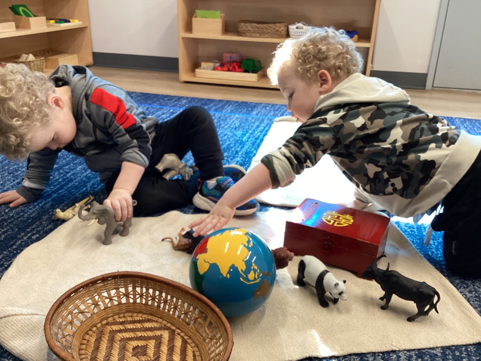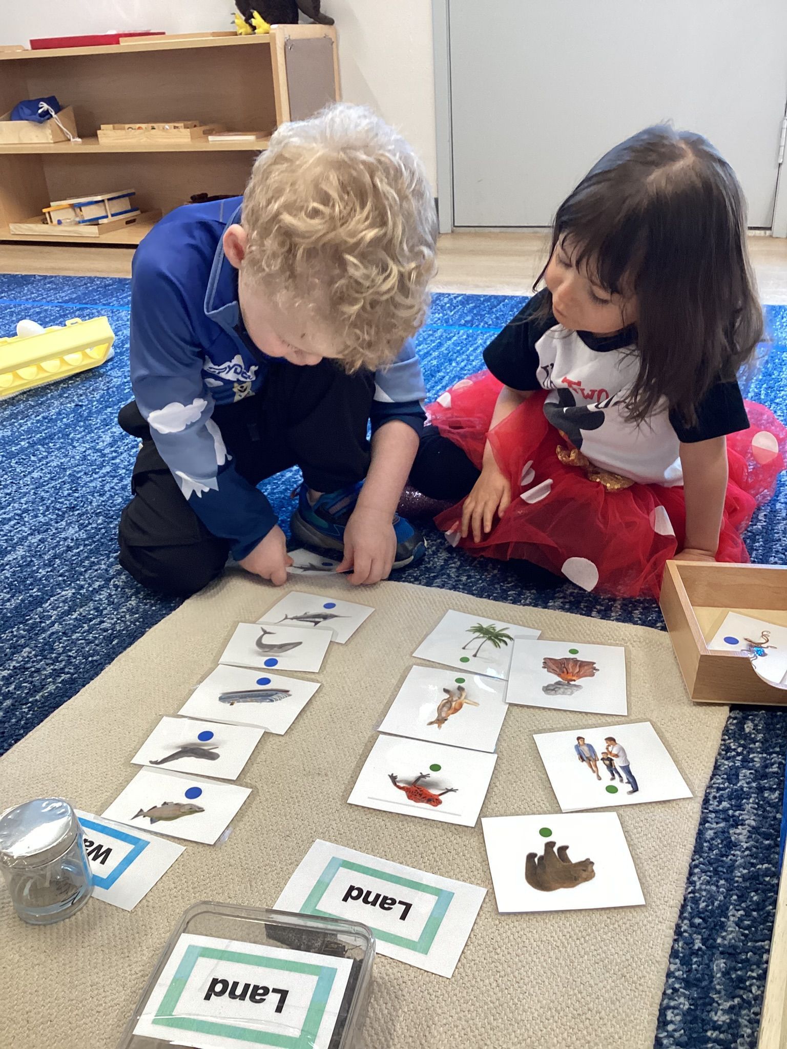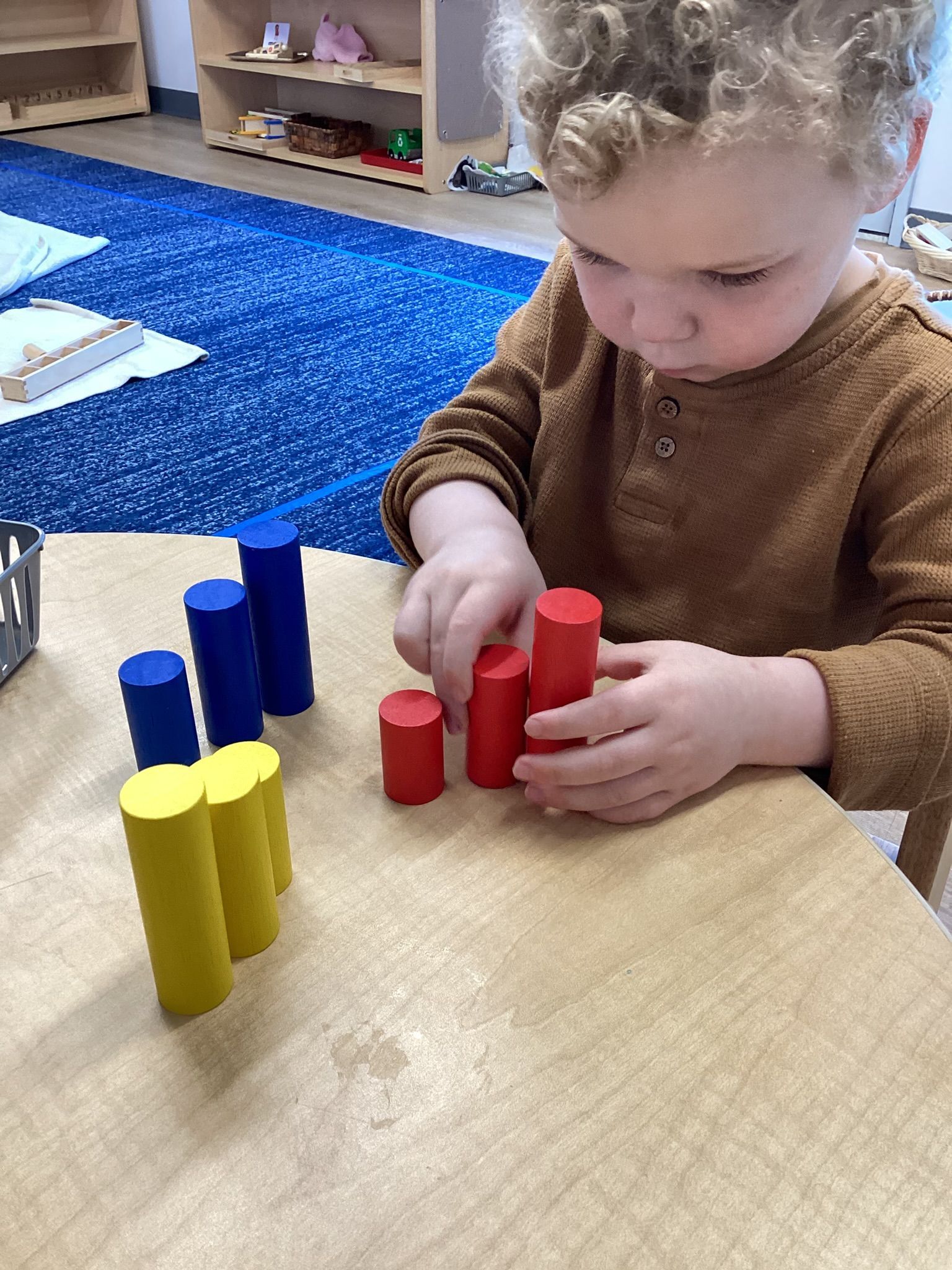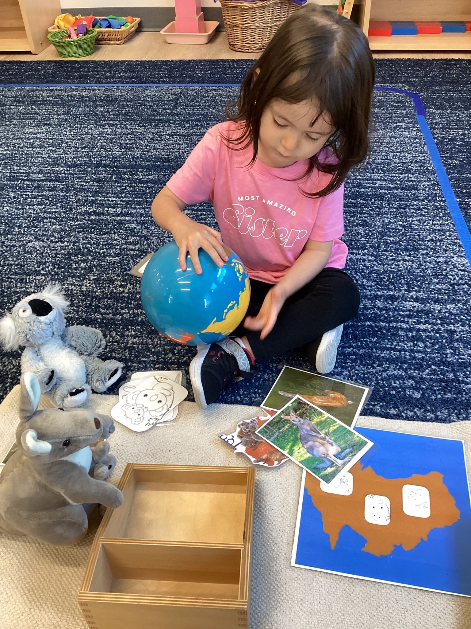 October was a month filled with Halloween fun in preparation for our Halloween classroom party! Our children decorated our classroom by making bats with the use of a “one finger” technique. It was fun to watch as it quickly moved to a “full hand” technique! And spider webs, too, by rolling a ball in white paint in a tray over black paper. Our children learned about bats and that they hang upside down in caves as well as how Spiders spin sticky webs to catch their food. We learned the sounds of so many letters like “e”, “f,” “g” and “h.” We traced the letters and practiced writing them with a sensorial bag of colored liquid, which introduced forming strokes and circular motions. In math we incorporated Fire Safety Awareness with photos of firemen, their trucks and placed them in the colored corresponding trays marked 0 - 4. Our toddlers are doing so great learning that 0 means there is nothing and learning fractions with the use of wooden solids with sections that are manipulated and form a Whole One. In geography, we studied North America and reinforced its location on the continental globe, indicated in orange. Matching photos of its plant life and terrain gave an extension of what can be found there. Also, as we sang the continent song, we pointed out each of the 7 continents in their own respective colors. I’m so proud of all our toddlers’ attention to these relationships as they begin to unfold.