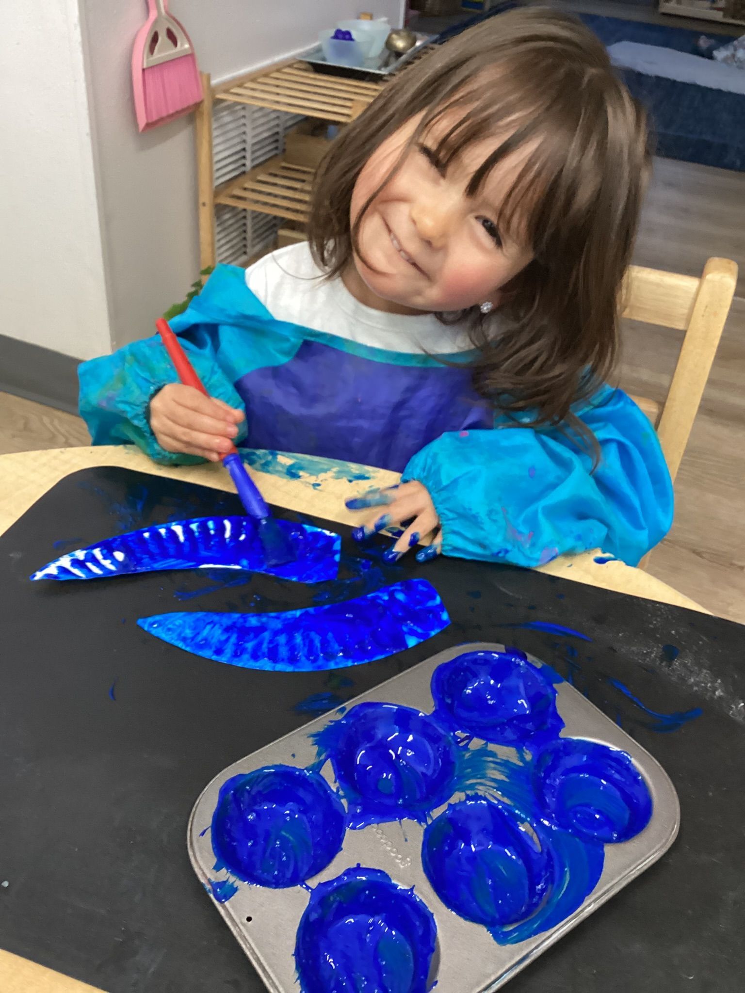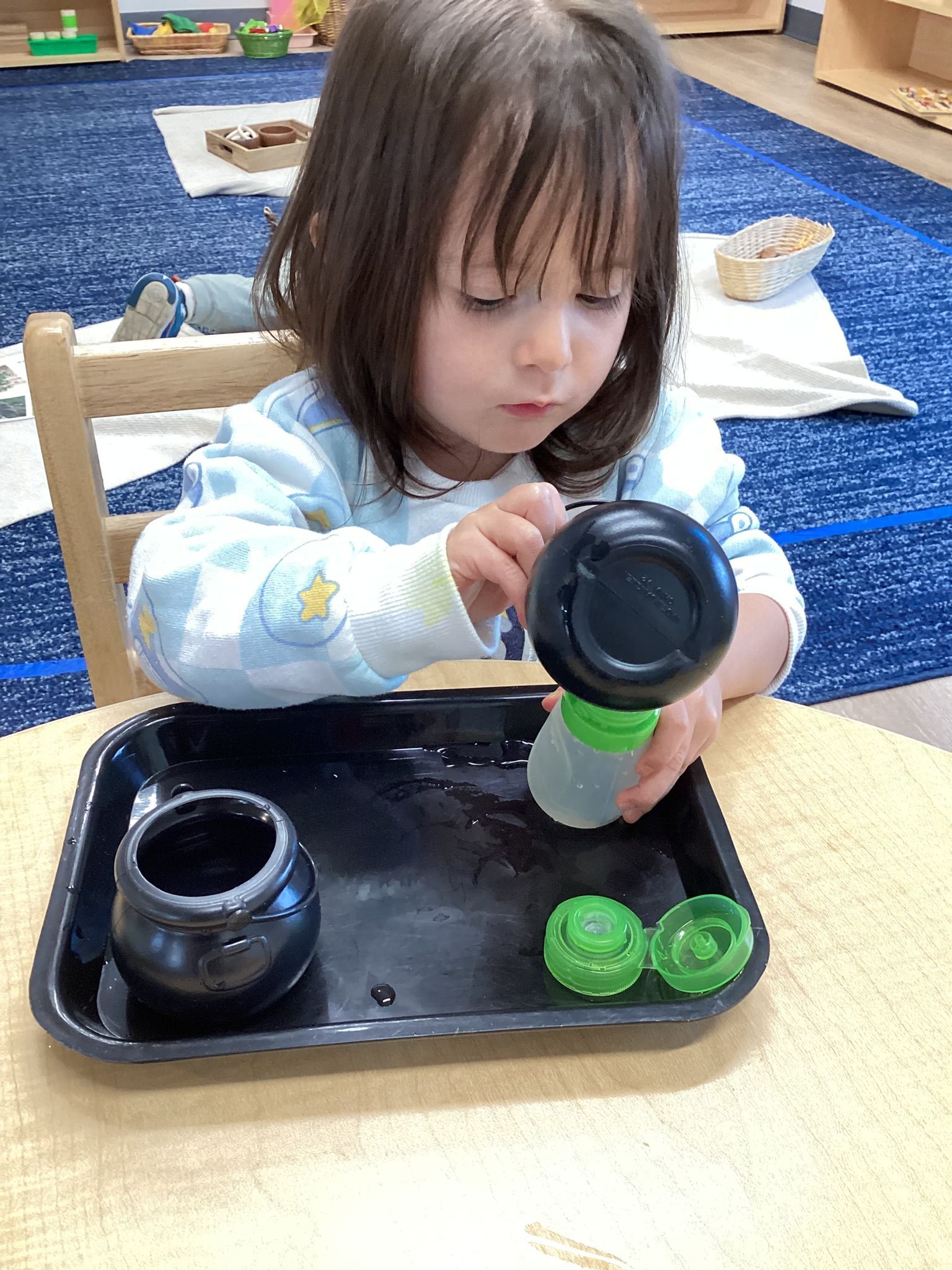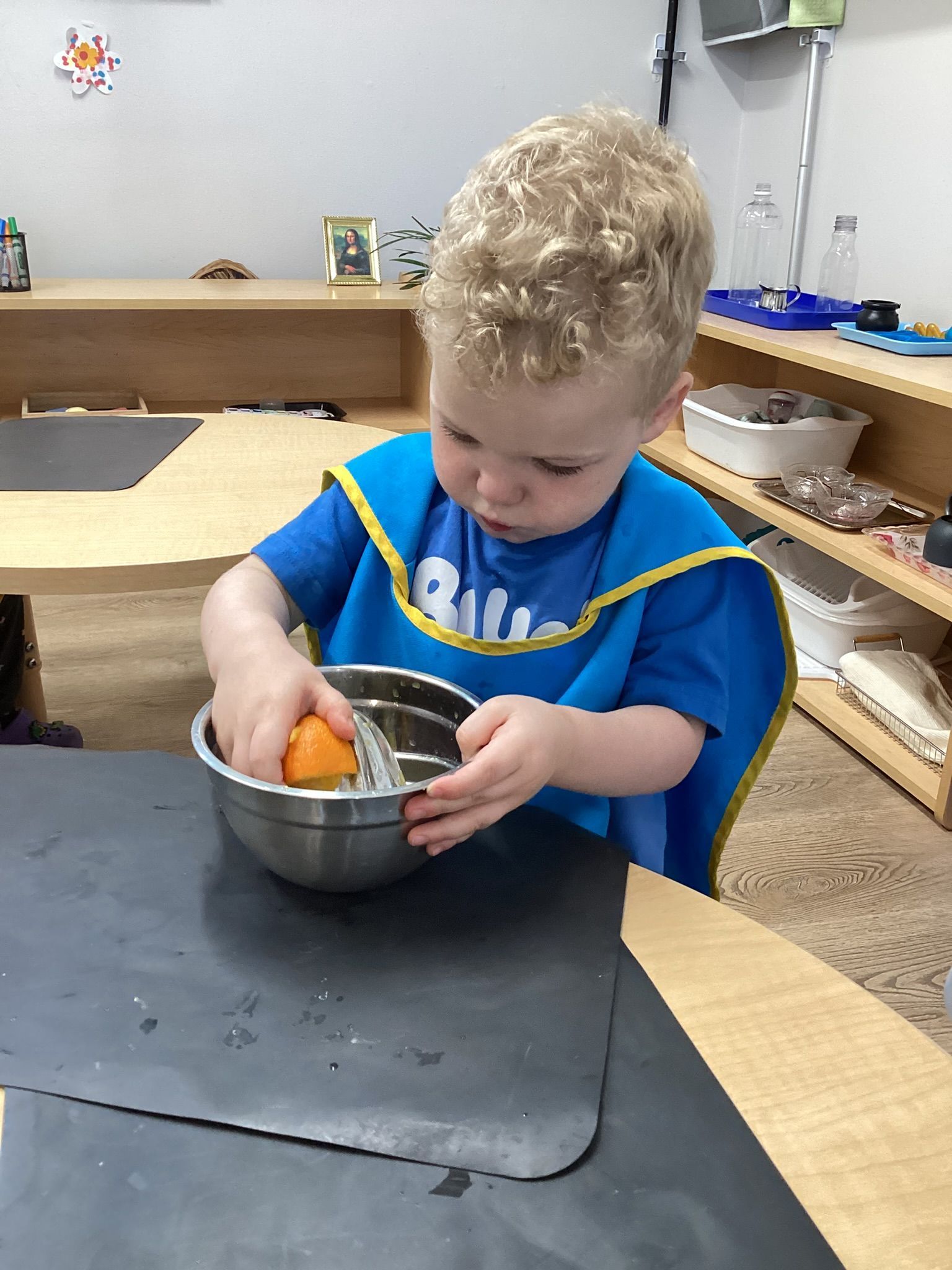 We were all so excited to be back at school and able to explore our classroom! Goodness, how we’ve grown since the first day we started at PCMA! Our Language has been developing so quickly with singing songs together like, “The Wheels on the Bus” and learning to take turns with morning greetings in Circle as we wait our turn to sing, dance, and clap our hands. The children decorated a large school bus and pasted facial features of eyes, nose and mouth to make their own unique face for our All About Me theme. We even had fun pressing faces into the mirror to see ourselves… “Up Close!” We practiced tracing letters a - d and making each sound. In Science we learned the Parts of the Apple, the Carrot, and even tasted honey from the Honeybee. Our calendar serves many purposes: Science (Weather Outside), Language (Singing Days of the Week), and Math (Rote Counting of Days)! Practical Life is care for environment (Watering Plants), Washing Baby as well as the practice of 3 -Finger Grasp for Spooning, Tongs, and other works.